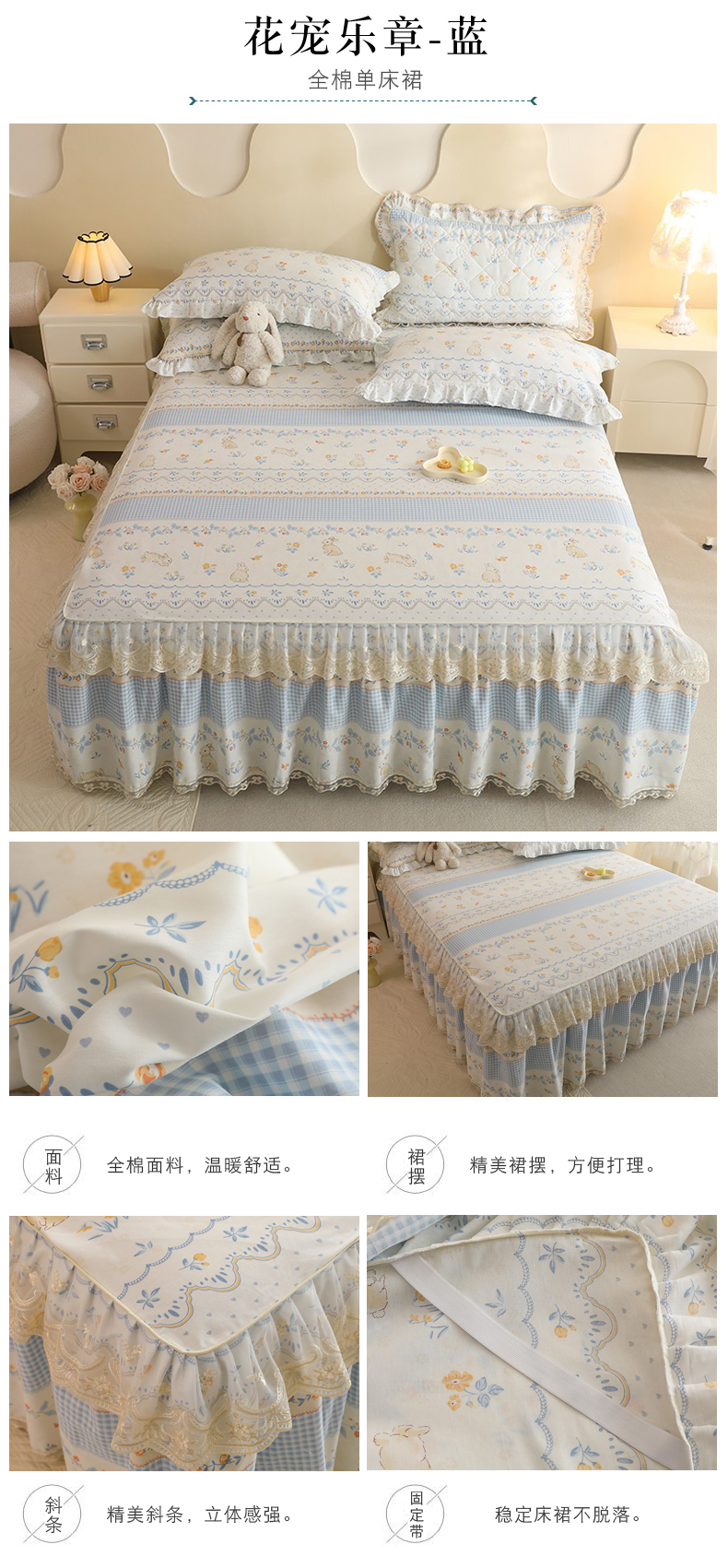 (总)美达家纺 2025新款全棉纯棉AB版蕾丝小花边单层床裙四件套,解语花,南湘,沁雨花叶,悦棠