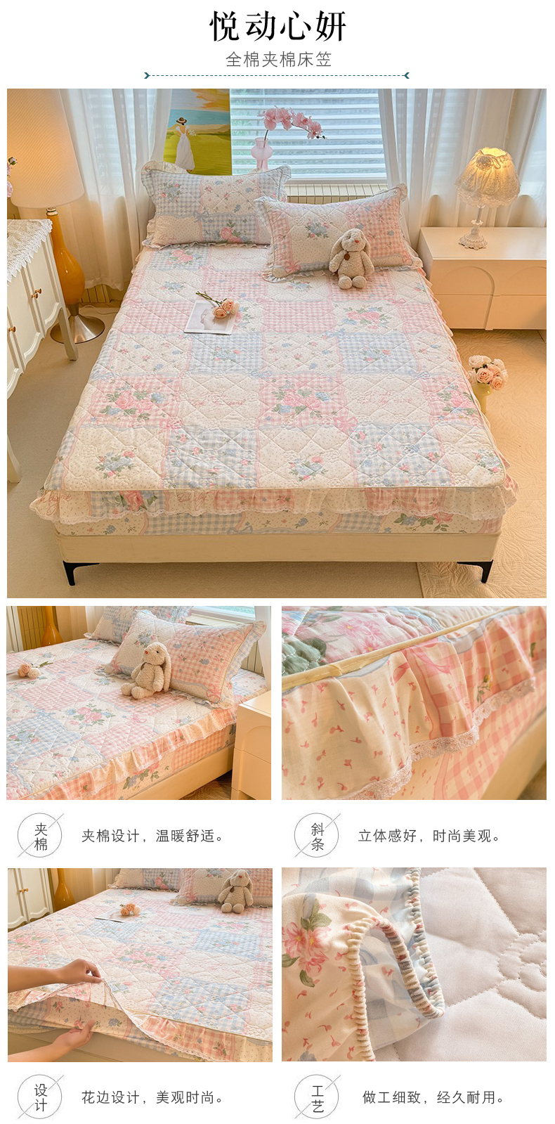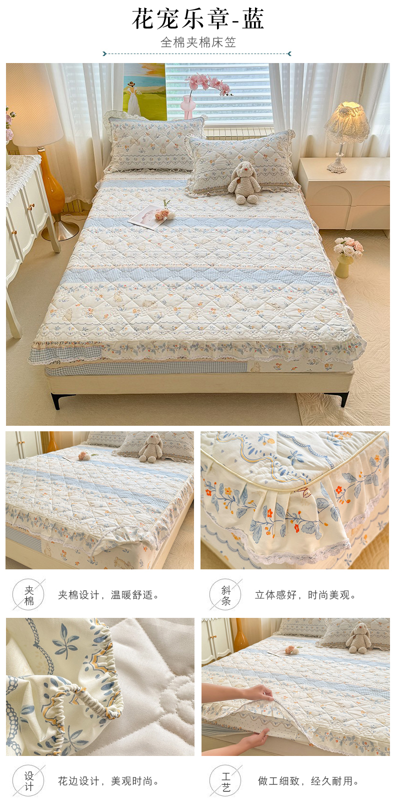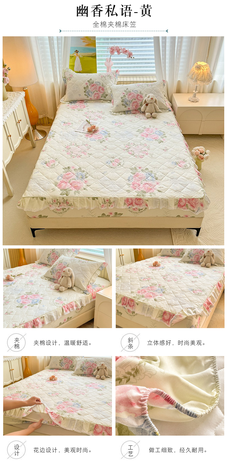 美达家纺 2025新款全棉印花夹棉床笠 纷然花朵