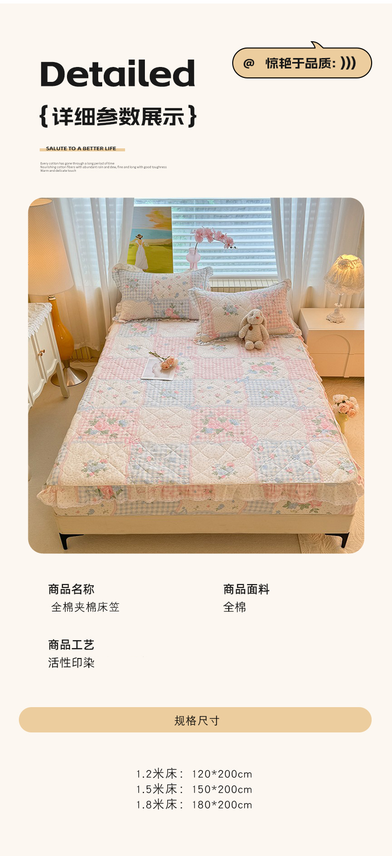 商品名称:美达家纺 2025新款全棉印花夹棉床笠 纷然花朵