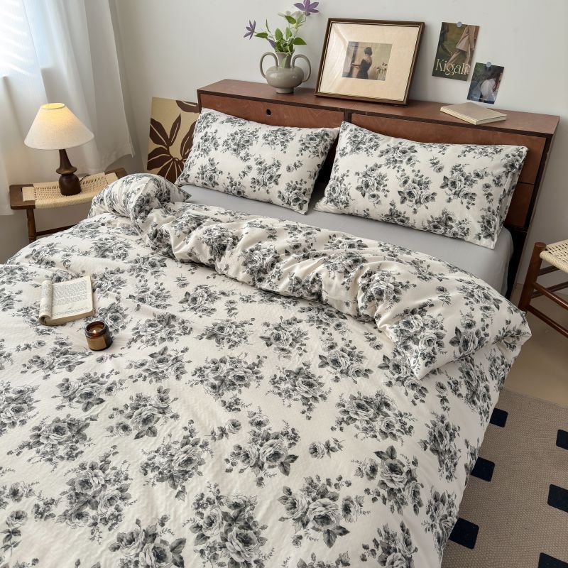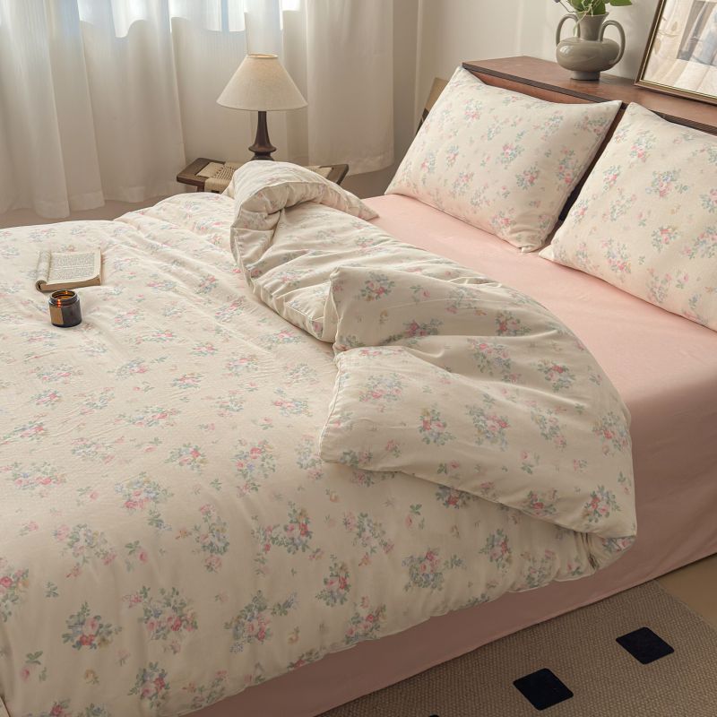 商品名称:典曼家纺 2025新款双层纱小清新印花四件套-床拍 浪漫邂逅