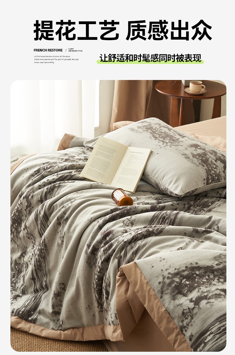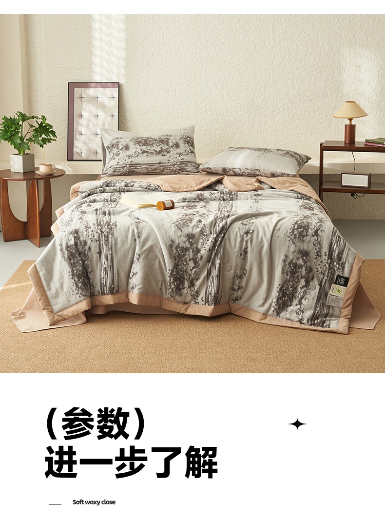 • 91家纺网 家纺一手货源 找家纺 2025新款全棉色织大提花棉花夏凉被 被子被芯 墨凡-卡其