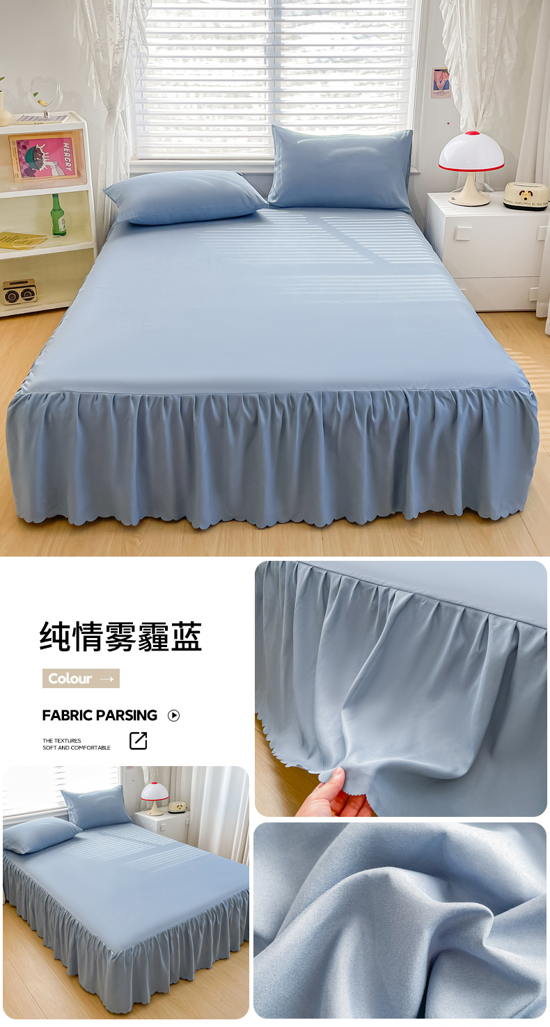 (总)莎臣豹 2025水洗磨毛纯色单品床裙可配二三件套,纯纯宝石蓝,纯纯丁香紫,纯纯豆绿,纯纯高雅灰,纯纯公主粉,纯纯卡其,纯纯抹茶绿,纯纯嫩黄,纯纯绅士灰,纯纯天空蓝,纯纯甜豆沙,纯纯雾霾蓝,纯情白