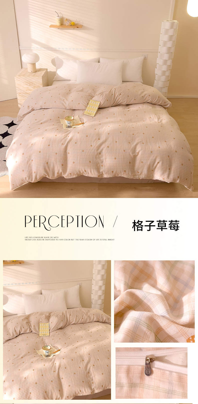 • 91家纺网 家纺一手货源 找家纺 DoDo 兜兜 2025新款全棉双层纱印花单被套(可定做尺寸) 格子草莓