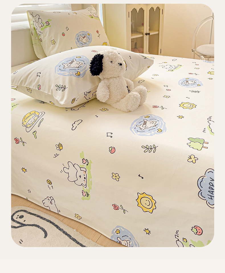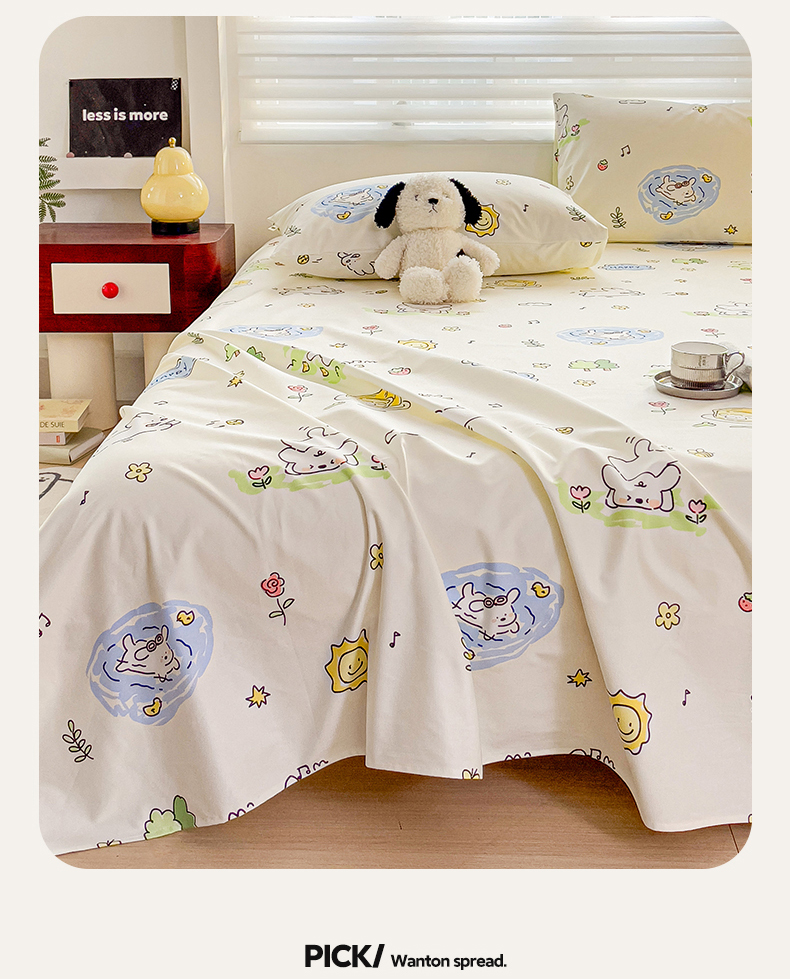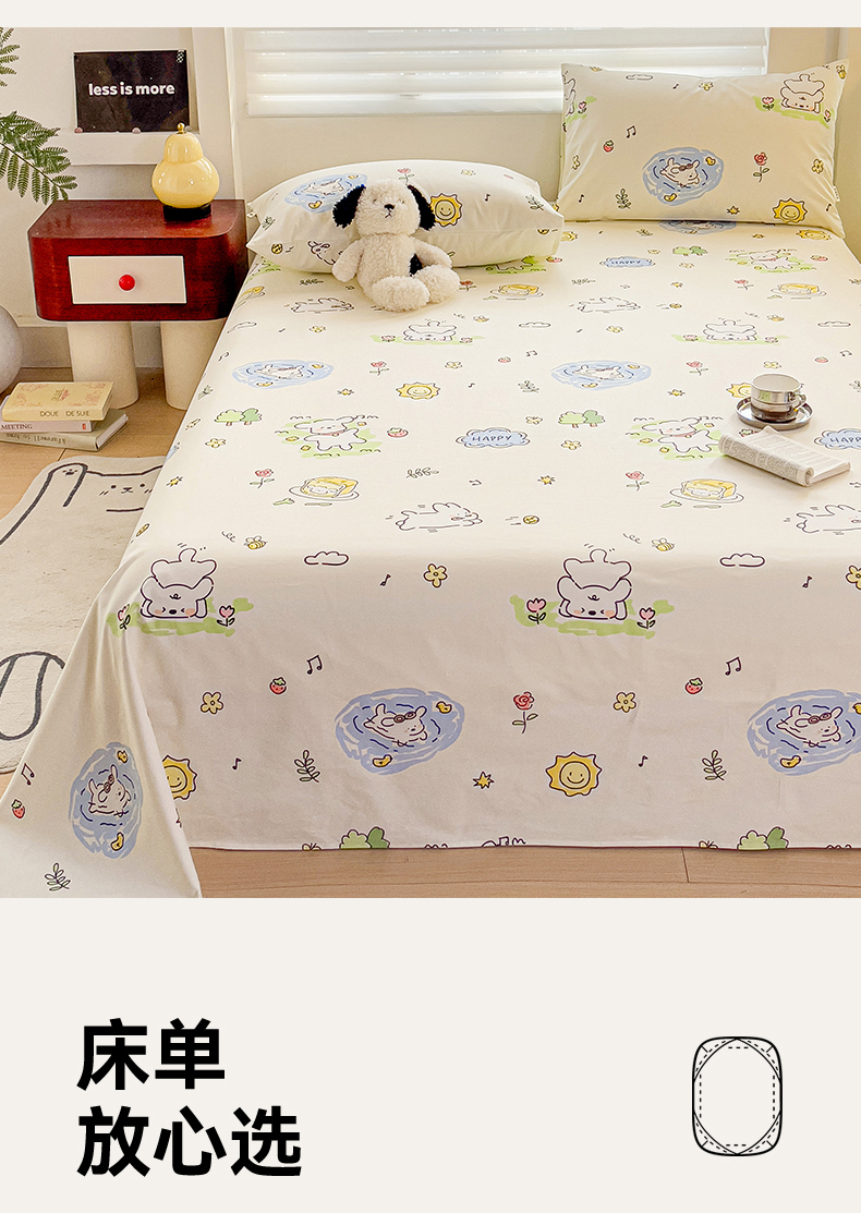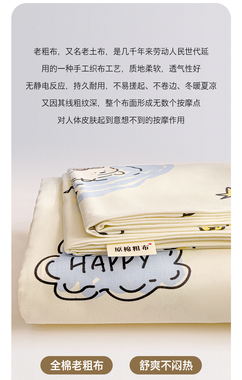 • 91家纺网 家纺一手货源 找家纺 名兮家居2025新款卡通简约时尚全棉老粗布床单 休闲时光