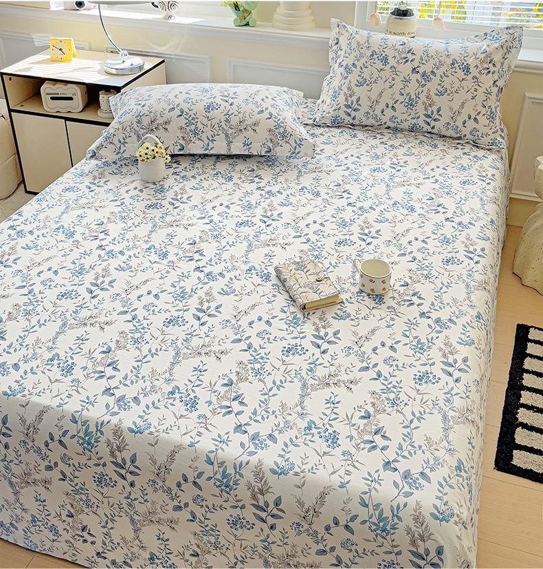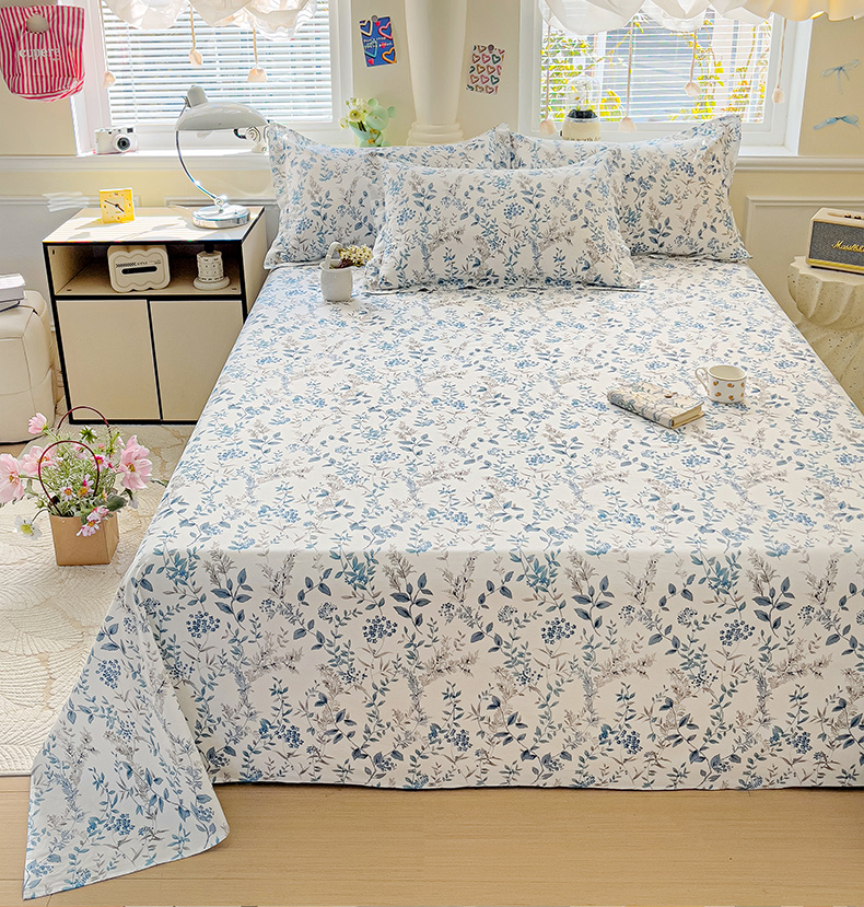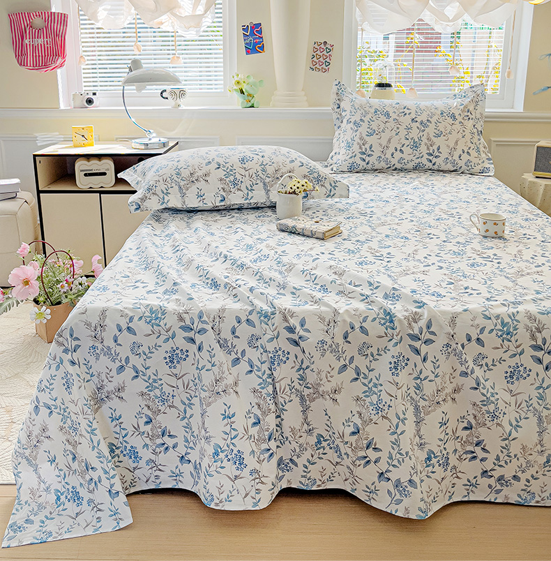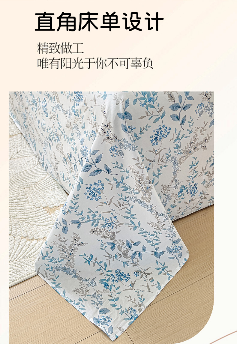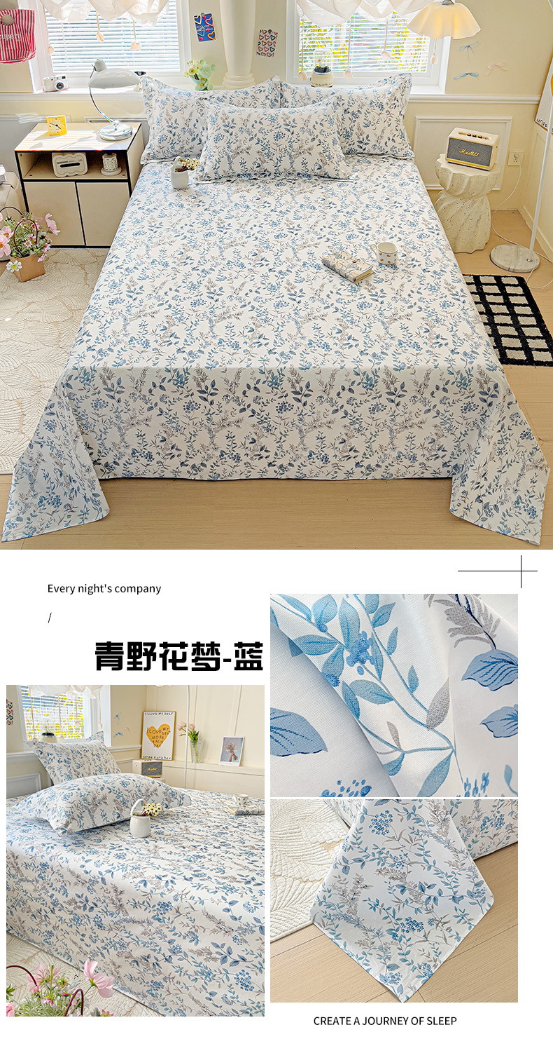 大柏树 2025新款全棉13376印花四件套系列(可定制)-单床单青野花梦-蓝