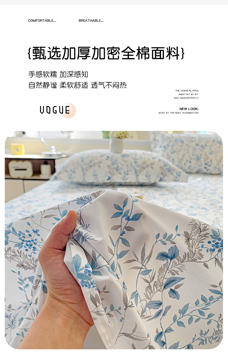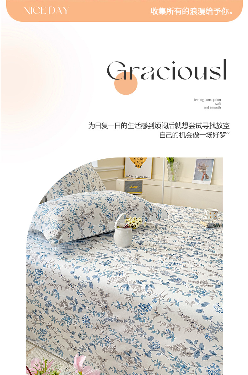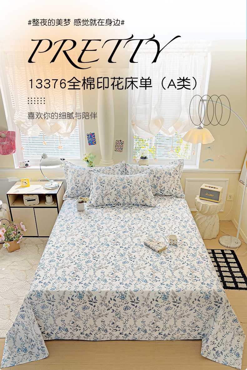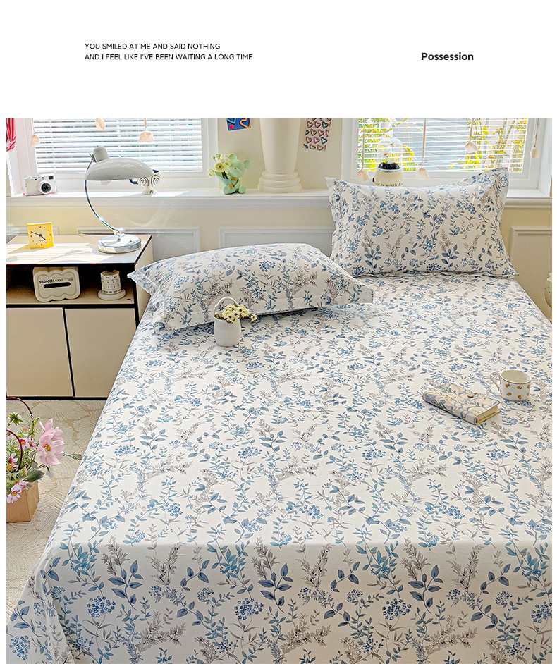 大柏树 2025新款全棉13376印花四件套系列(可定制)-单床单青野花梦-蓝