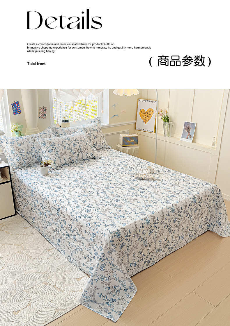 商品名称:大柏树 2025新款全棉13376印花四件套系列(可定制)-单床单青野花梦-蓝