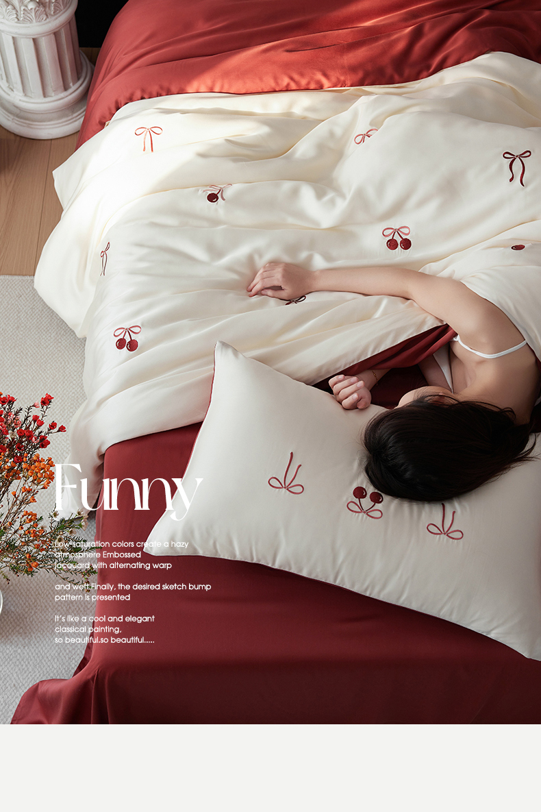 风向标家纺 奥地利进口兰精天丝绣花四件套-红色系列 红色蝴蝶结