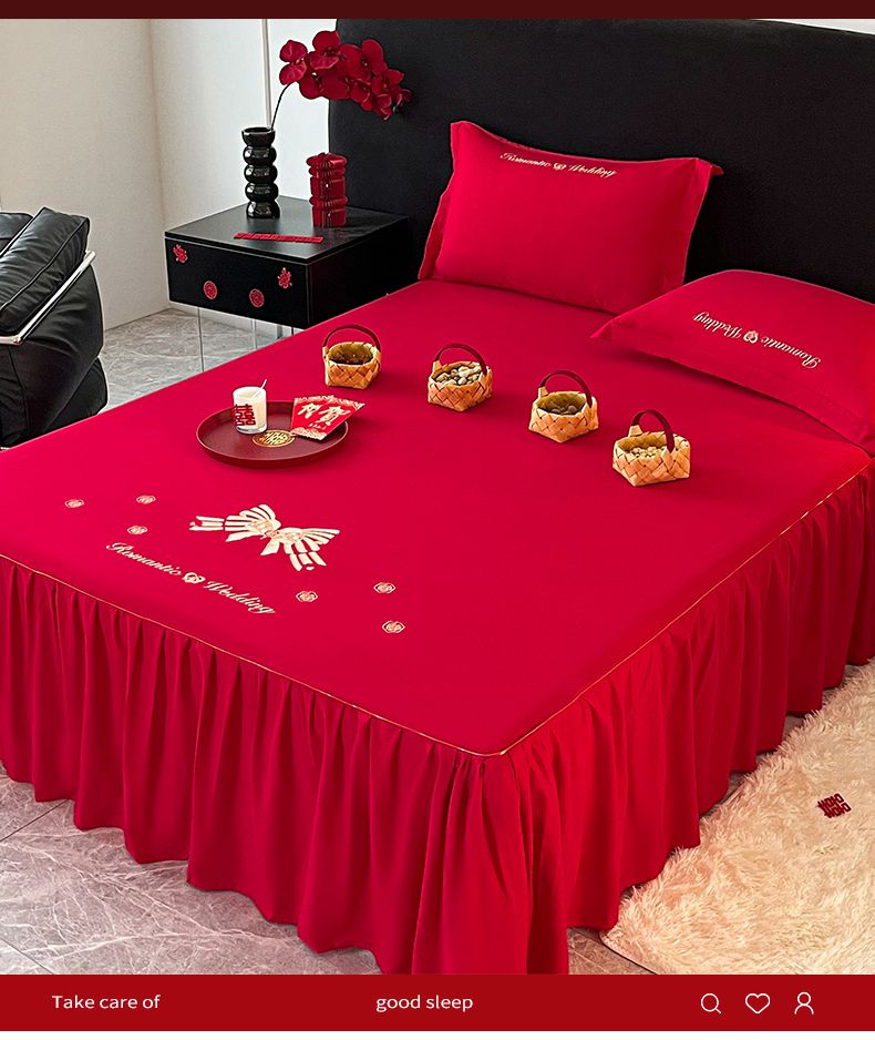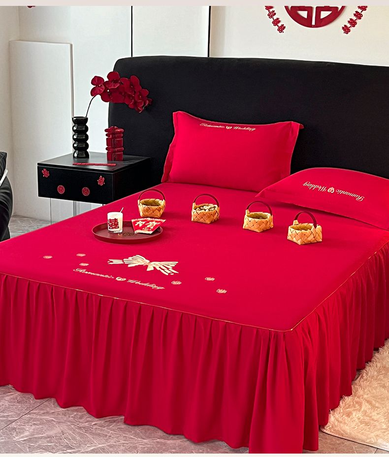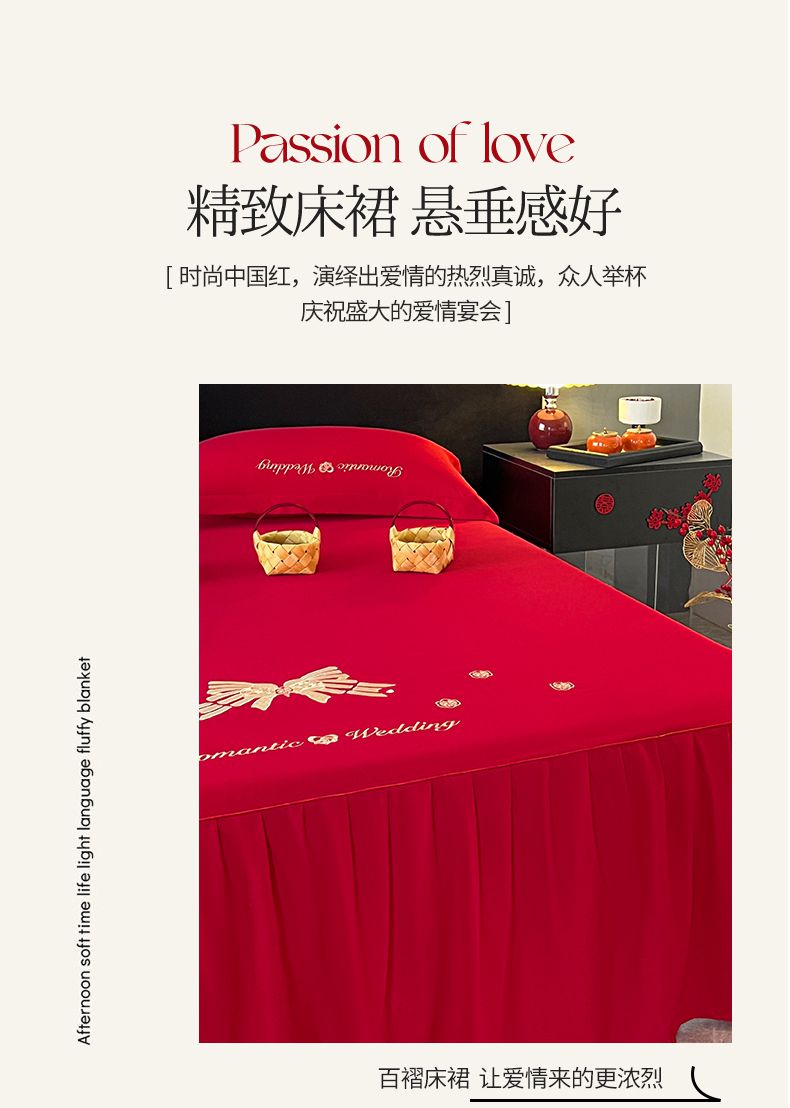 商品名称:(总)床绮 2025新款水洗磨毛婚庆刺绣床裙四件套系列