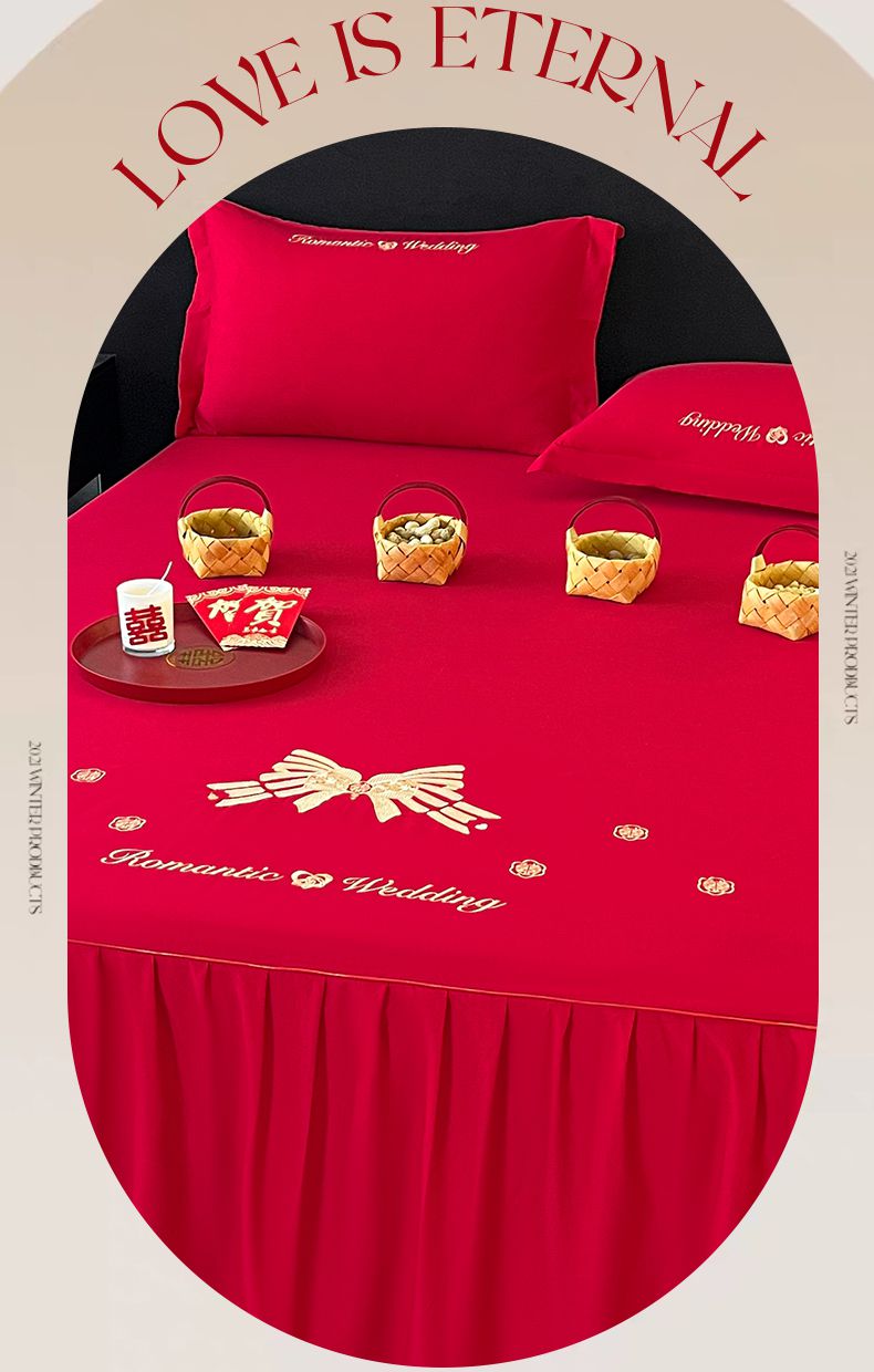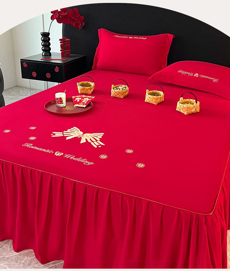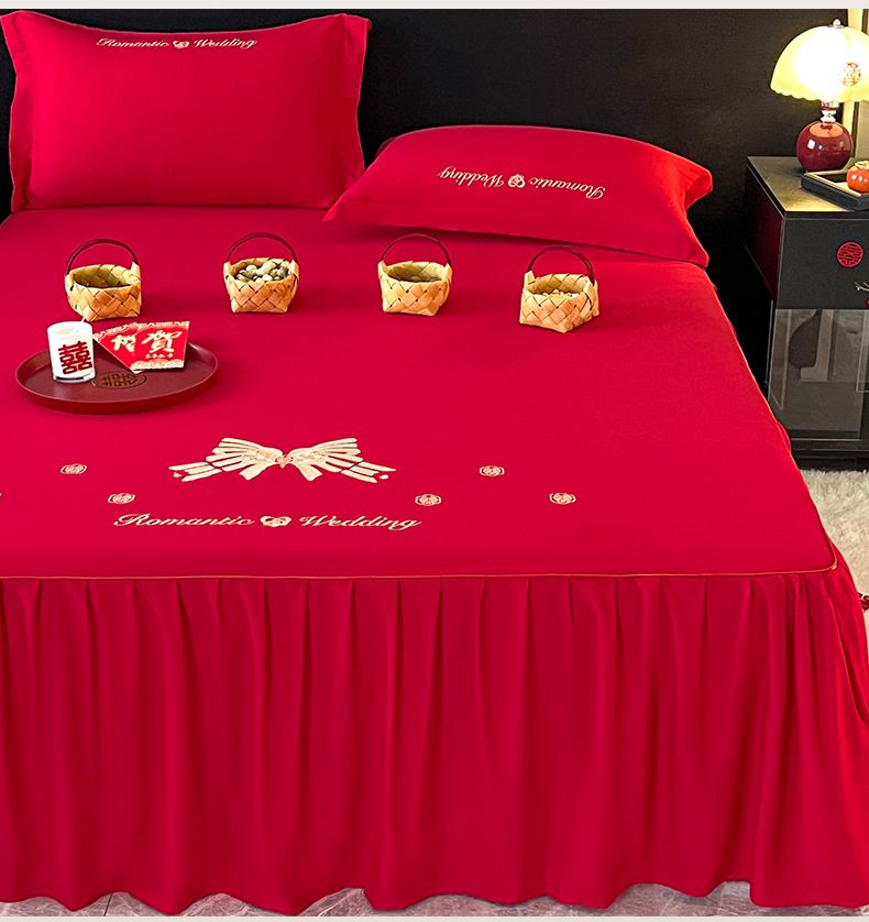 (总)床绮 2025新款水洗磨毛婚庆刺绣床裙四件套系列