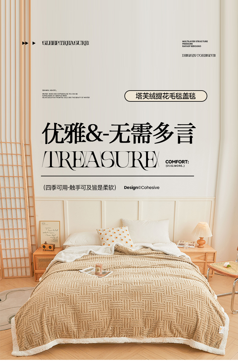 商品名称:澳梵家居 2025新款塔芙绒提花毛毯盖毯 草绿-白