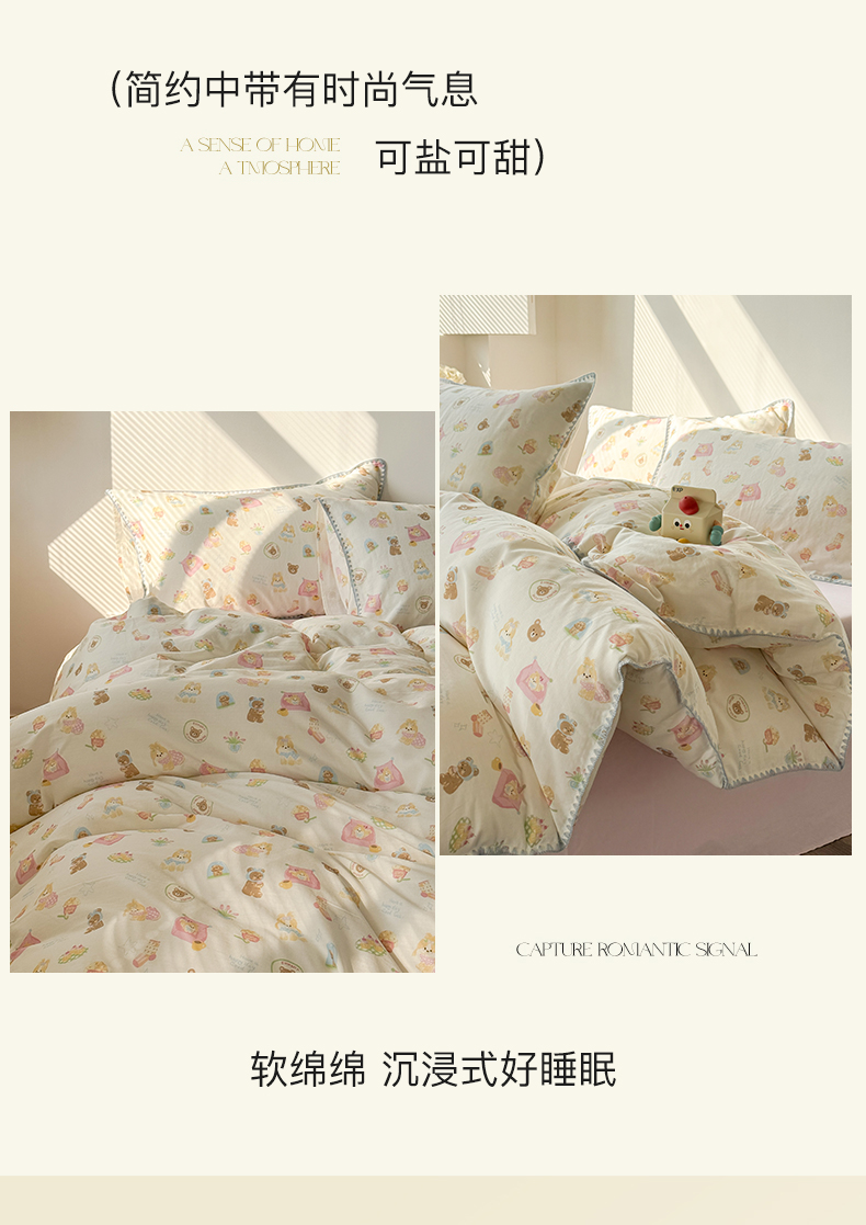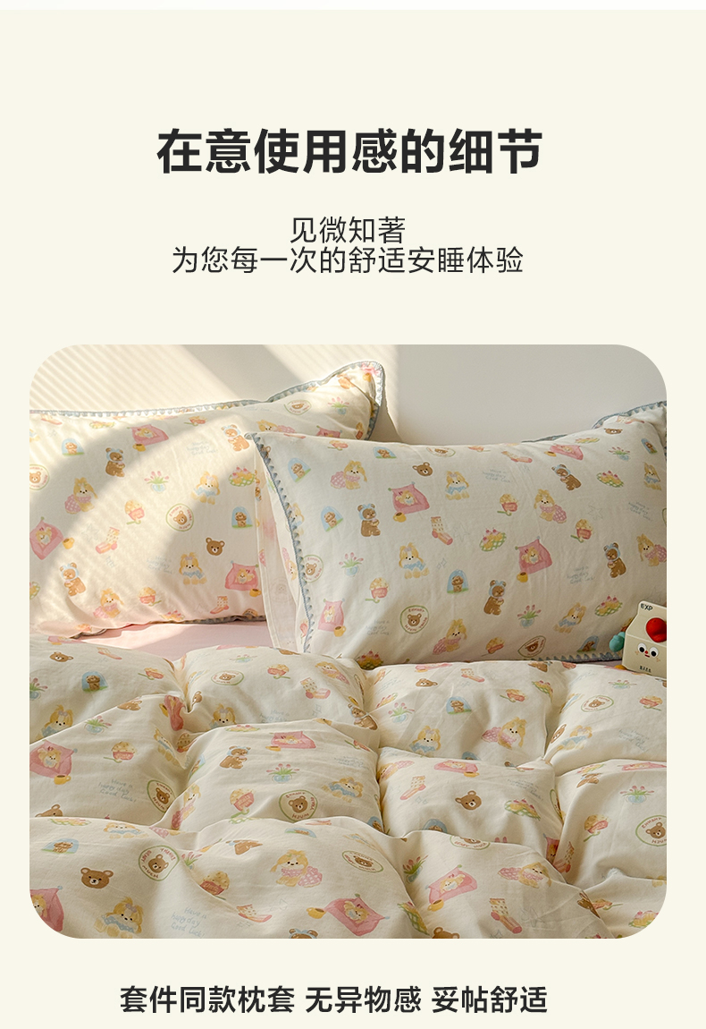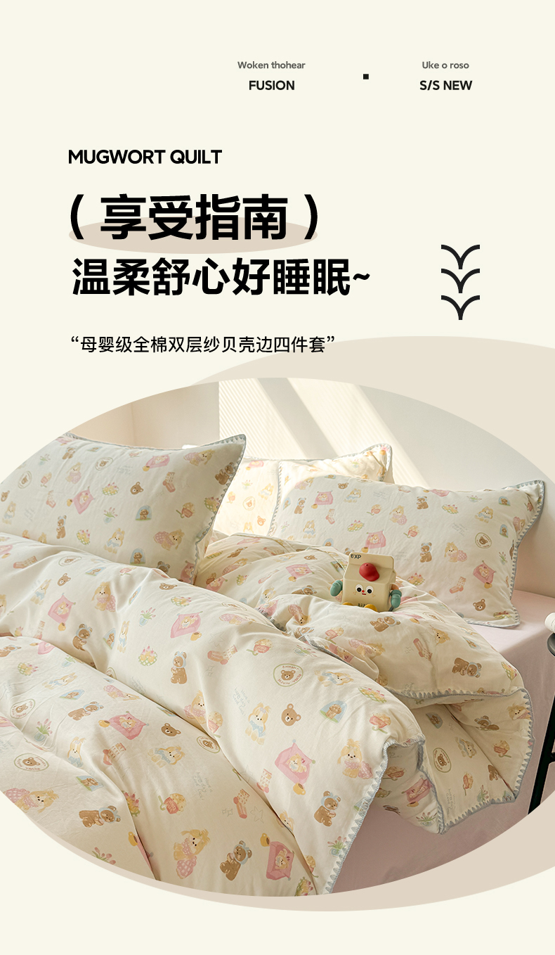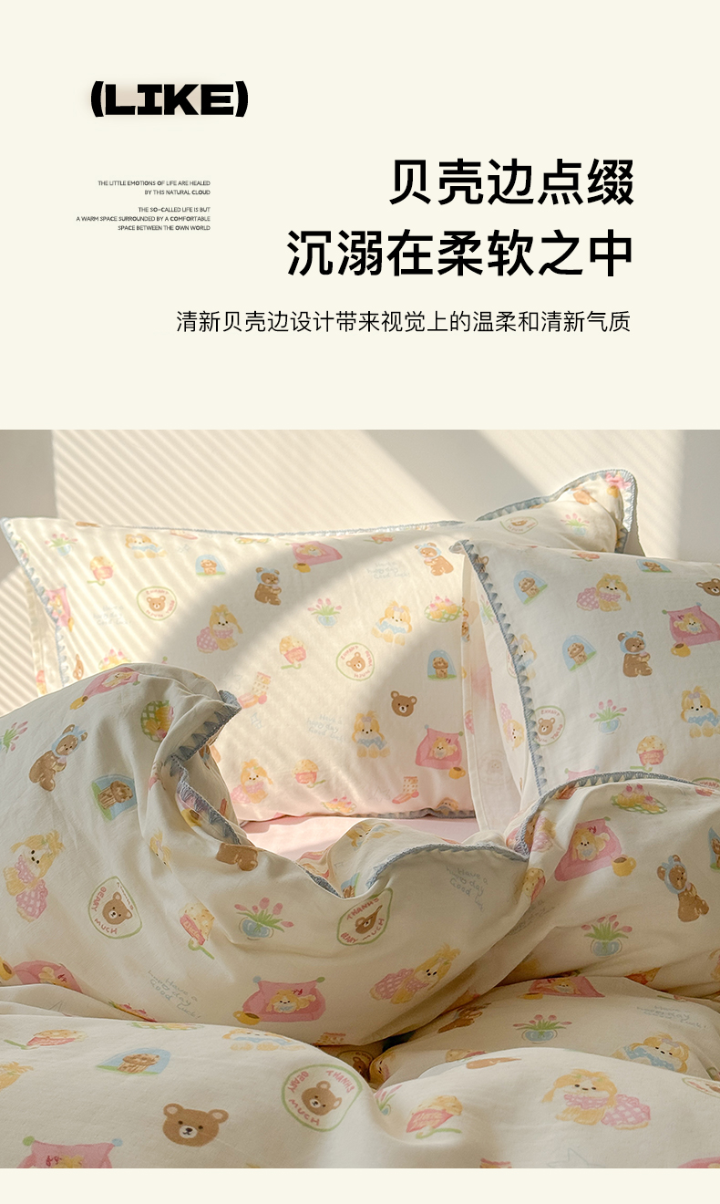 当前位置: 91家纺网 > 商品网购 > 床品套件 > 四件套 > 全棉普通四件套 > 2025全棉双层纱贝壳边四件套 春日派对