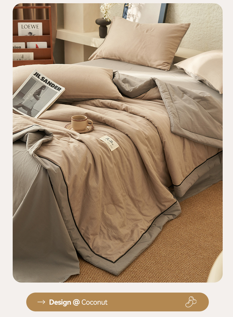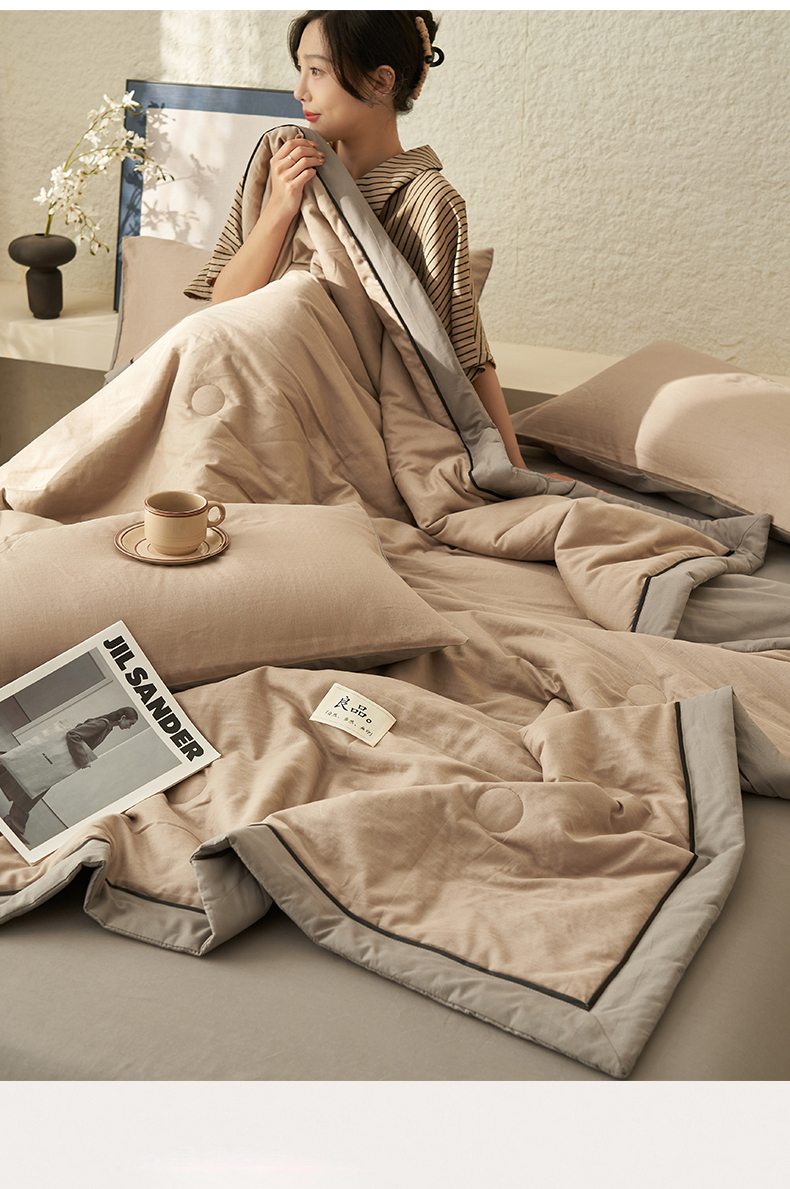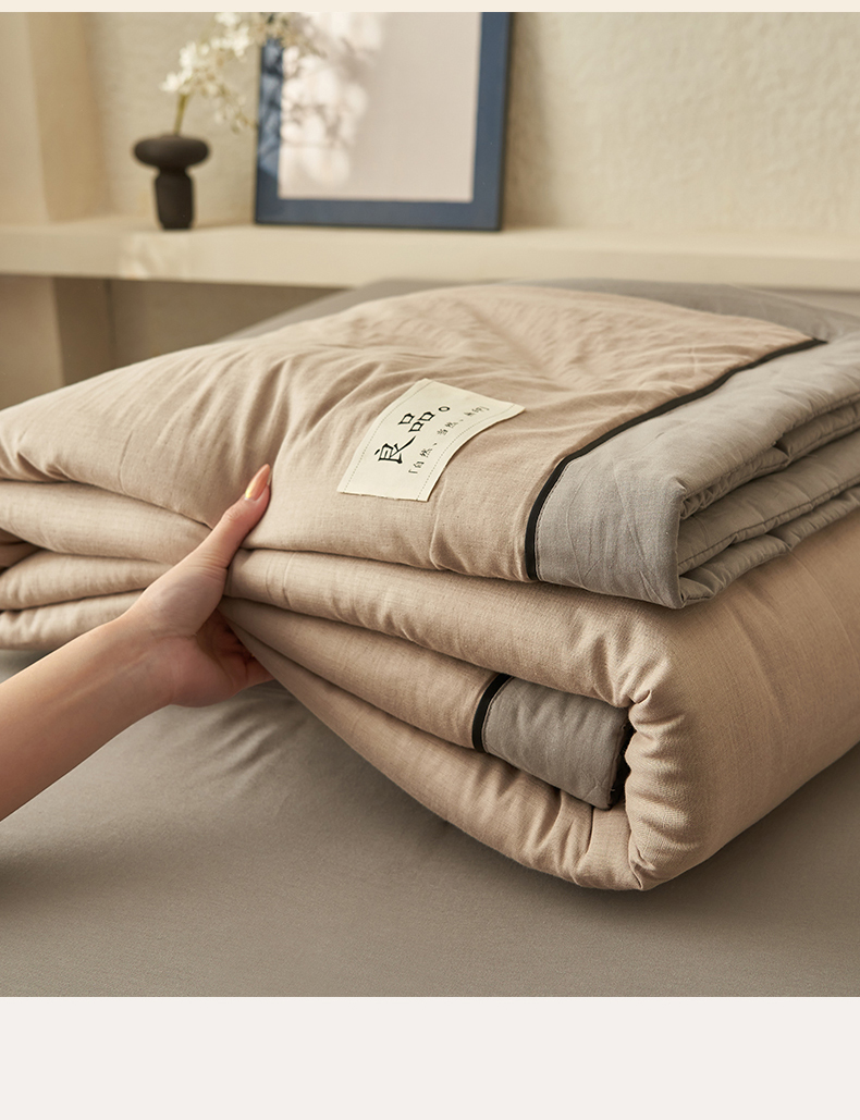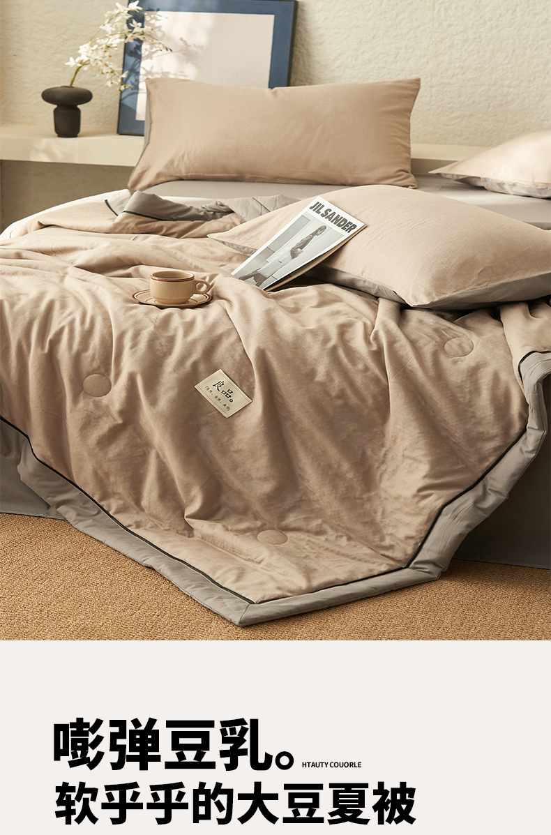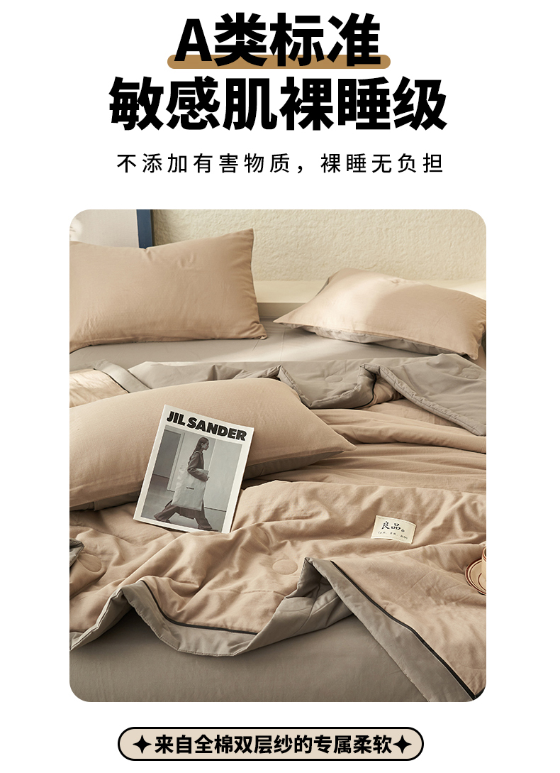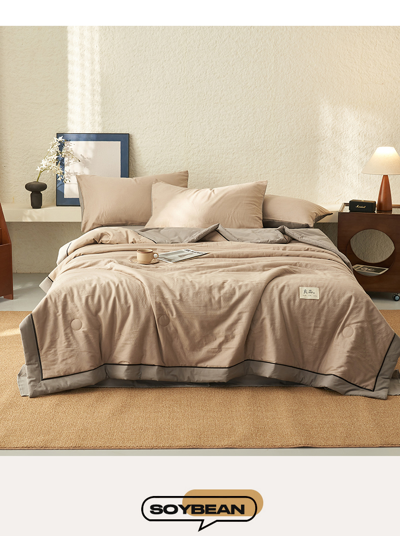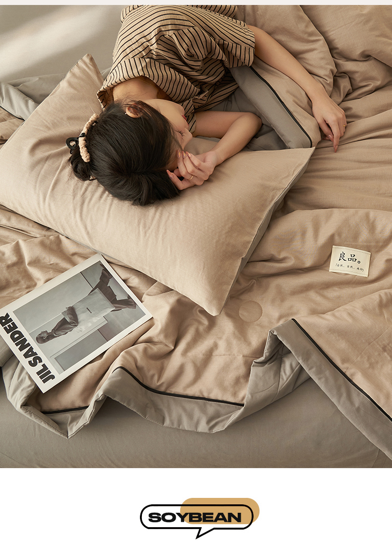当前位置: 91家纺网 > 商品网购 > 床品套件 > 四件套 > 全棉普通四件套 > 2025新款新款A类纯棉双层纱大豆夏被四件套全棉空调被 浅驼色