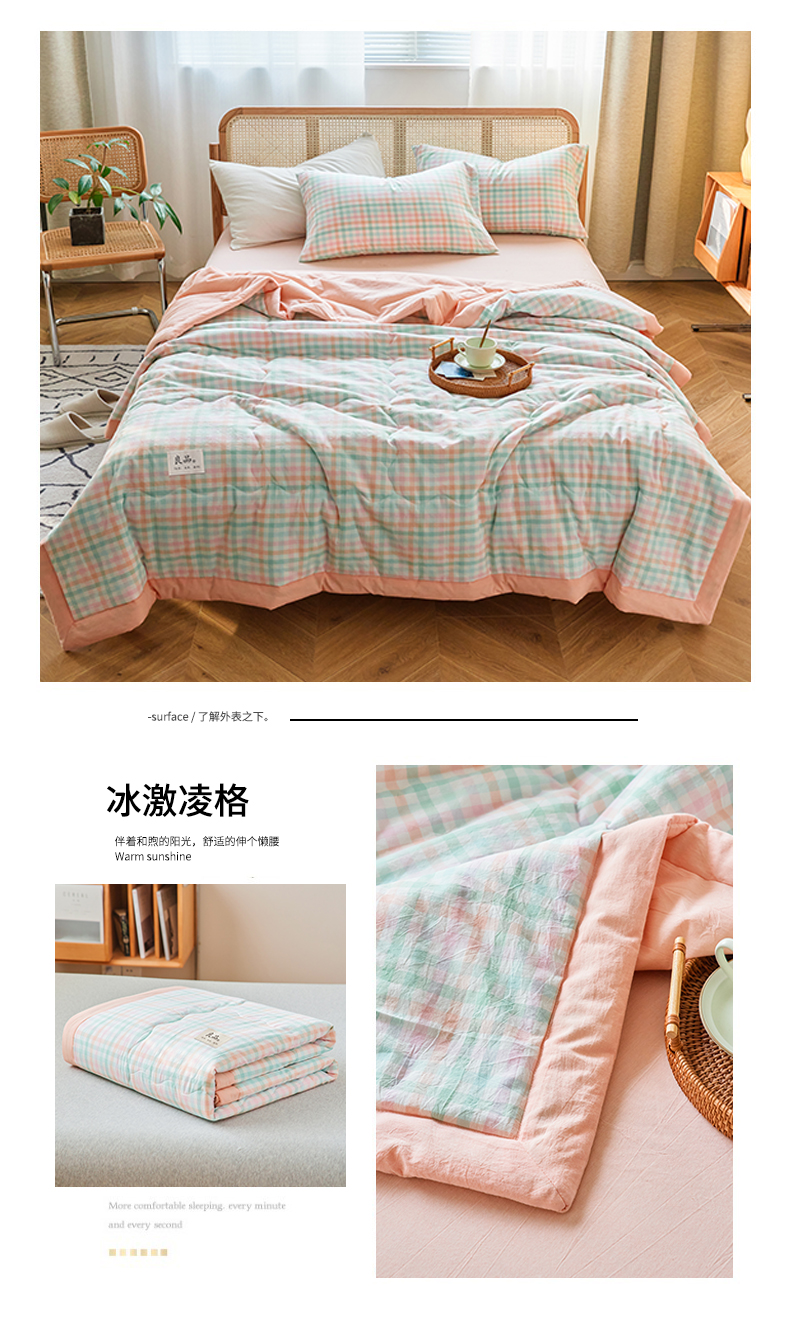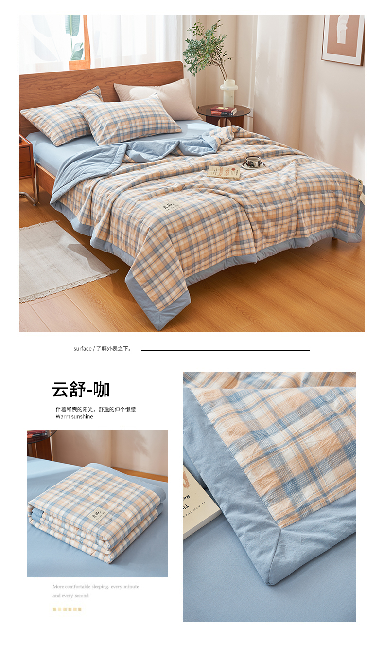 • 91家纺网 家纺一手货源 找家纺 2025新款A类纯棉水洗棉色织棉花夏被四件套全棉空调被夏凉被 沃格-咖