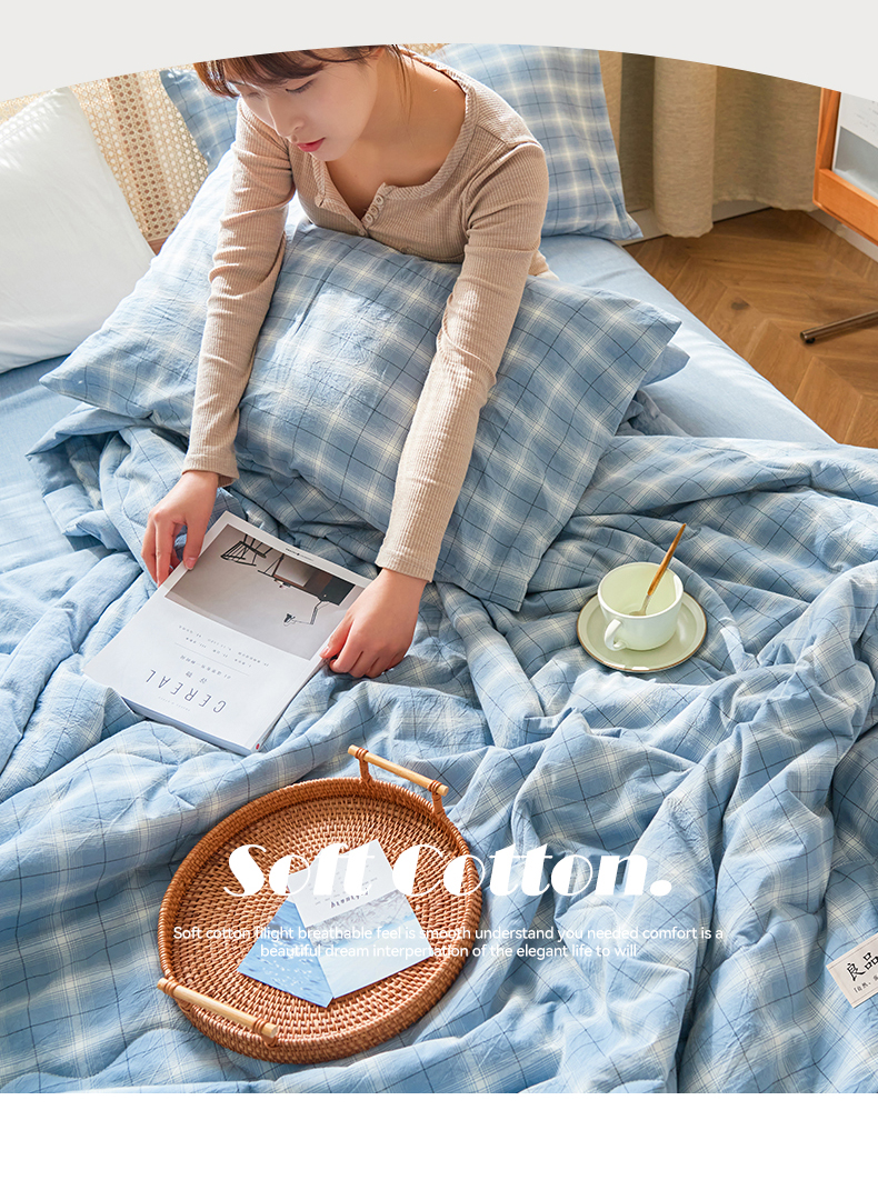 当前位置: 91家纺网 > 商品网购 > 被子 > 夏被 > 2025新款A类纯棉水洗棉色织棉花夏被四件套全棉空调被夏凉被 沃格-咖