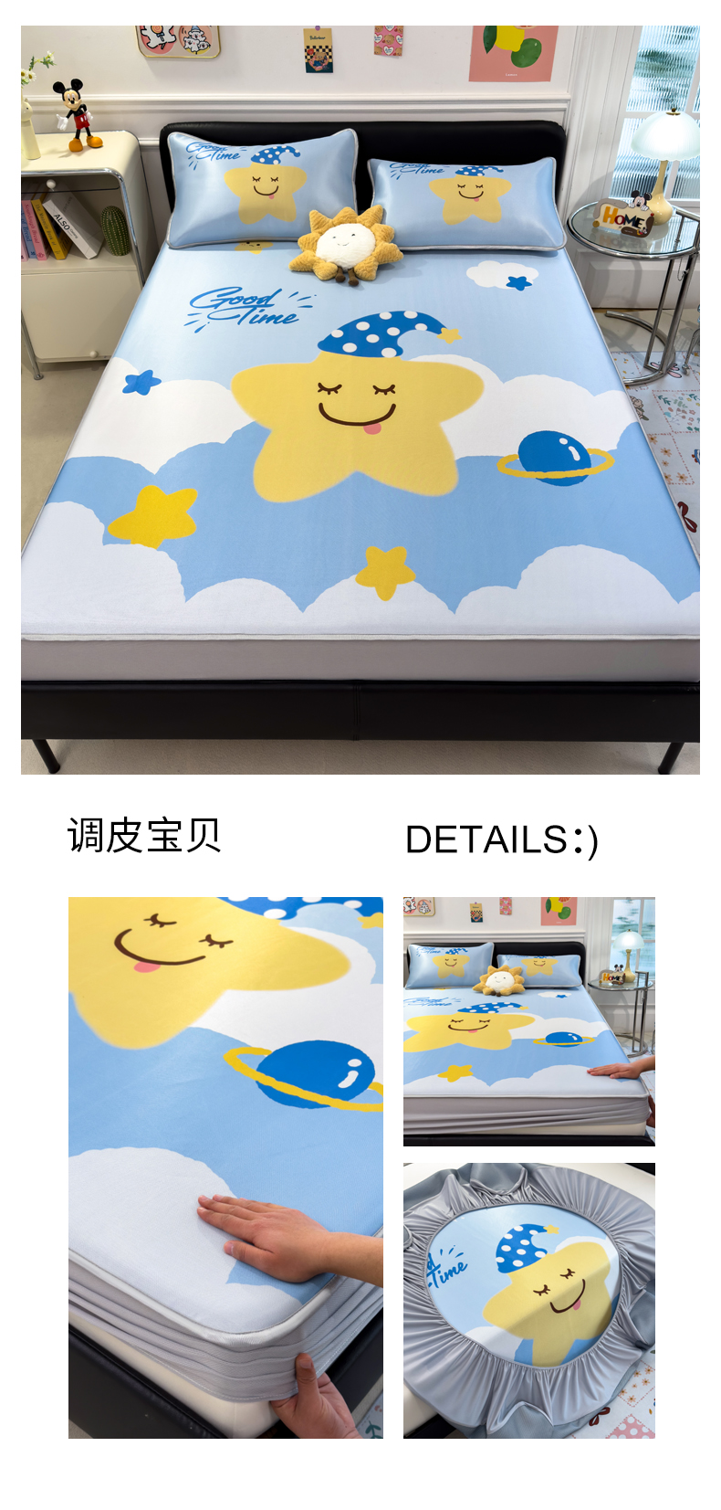 商品名称:丝羽坊 2025新款大版印花冰丝凉席冰丝席碳光冰丝凉席-床笠款 调皮宝贝