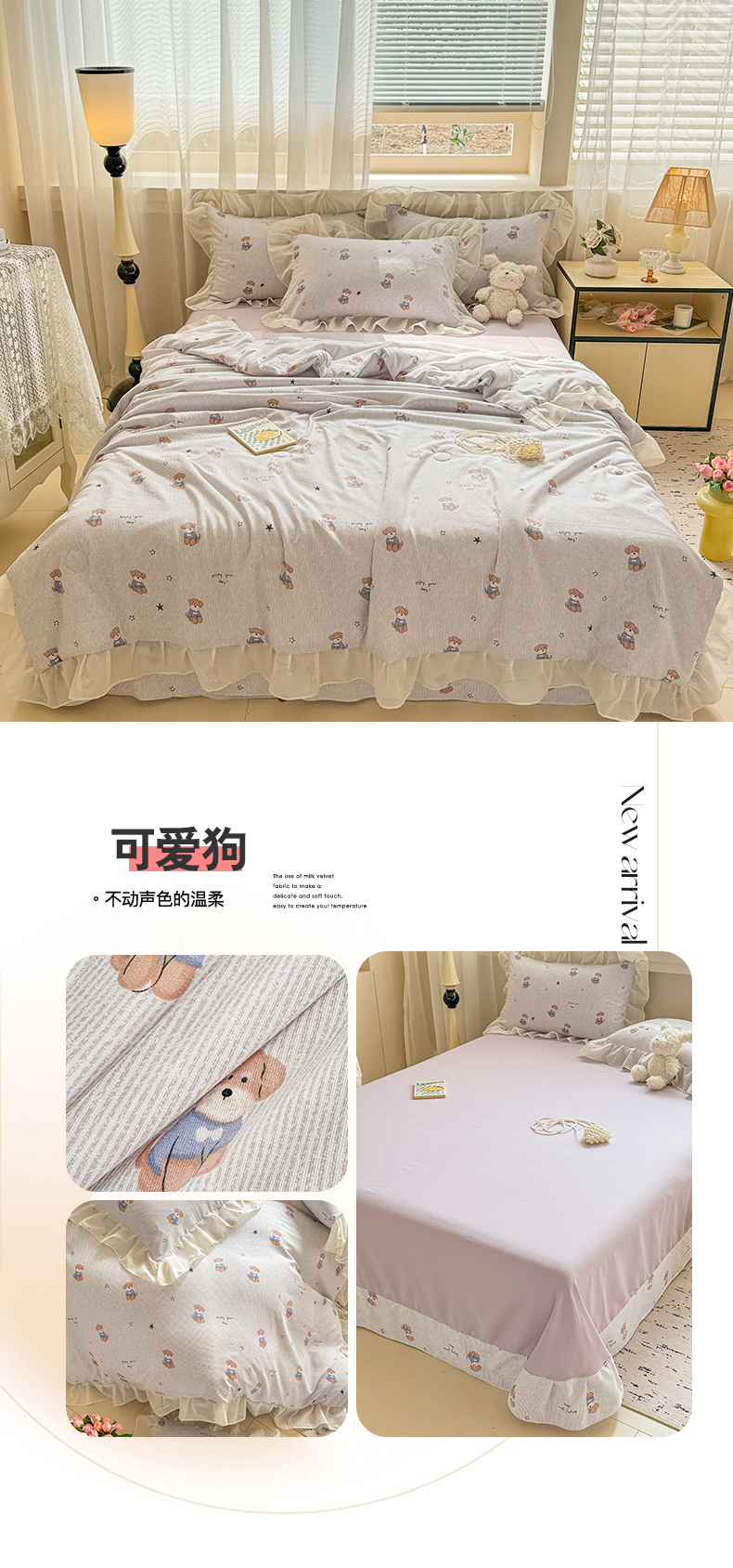 (总)芯贝儿 2025款加厚小清新花边牛奶绒卡通四件套,Q萌小熊,花园狗,蓝格小狗,萌宠派对,南瓜抱抱熊,甜心猫咪,星星宠物,元气猫咪,周末宠物园