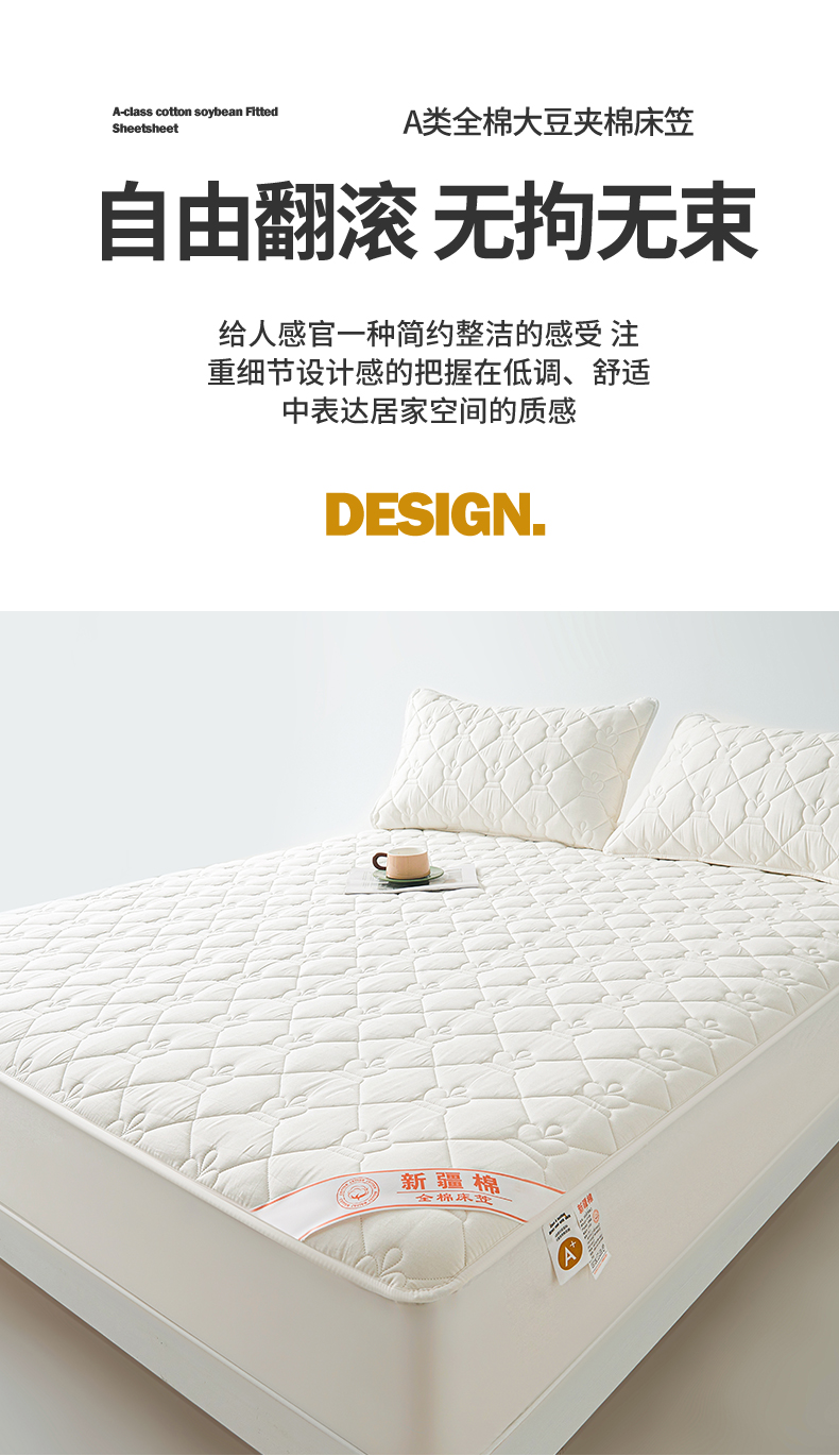 商品名称:伊人坊 2025新款全棉纯棉大豆夹棉床护垫-皇冠系列(不防水款) 皇冠-云朵白