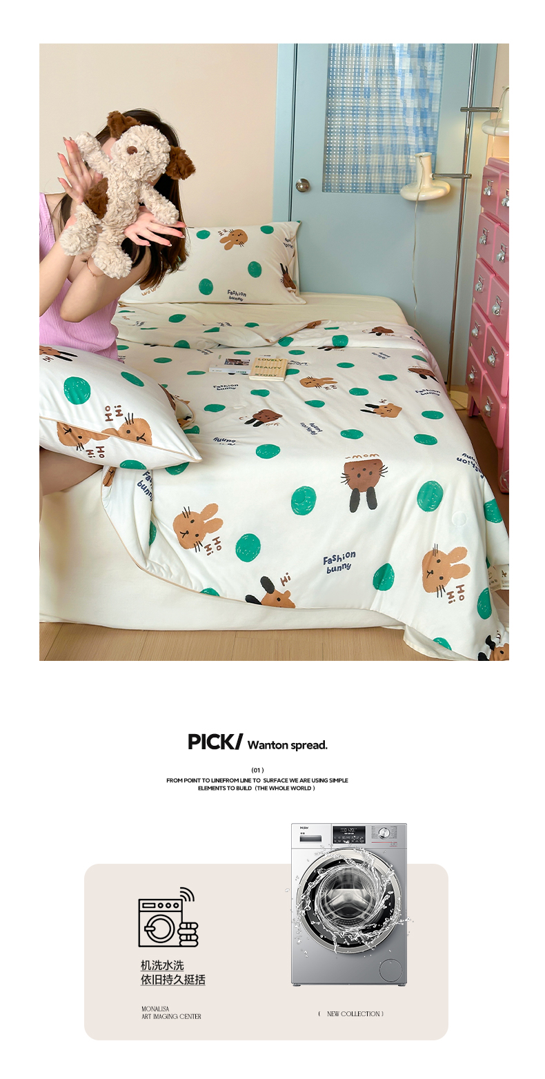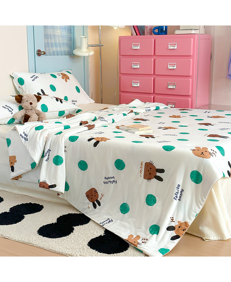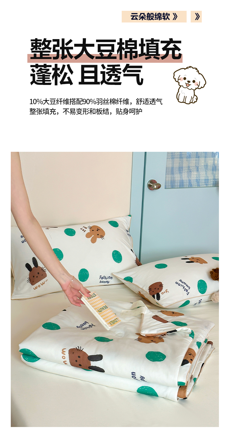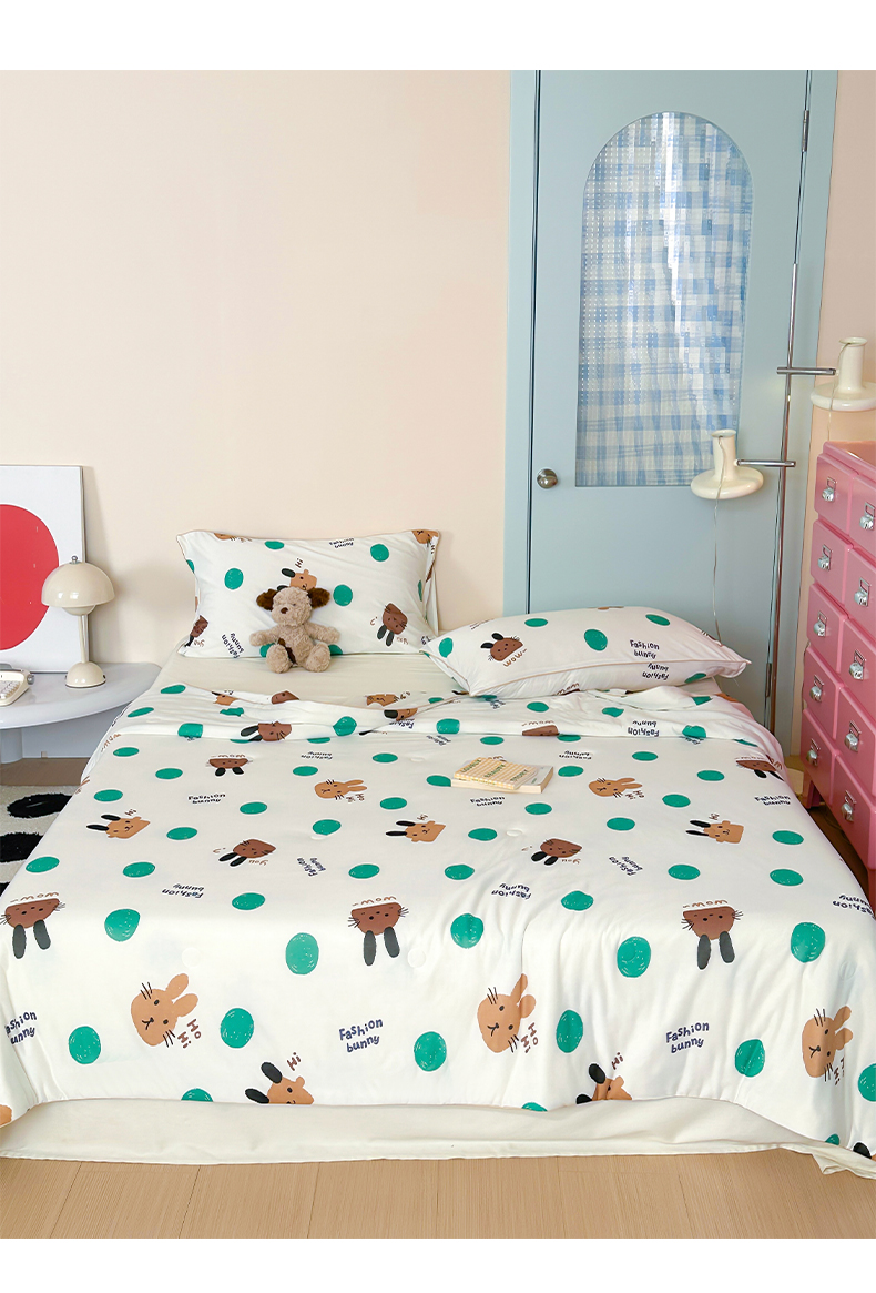 商品名称:一加一 2025A类牛奶丝针织棉印花大豆夏被 微醺兔兔