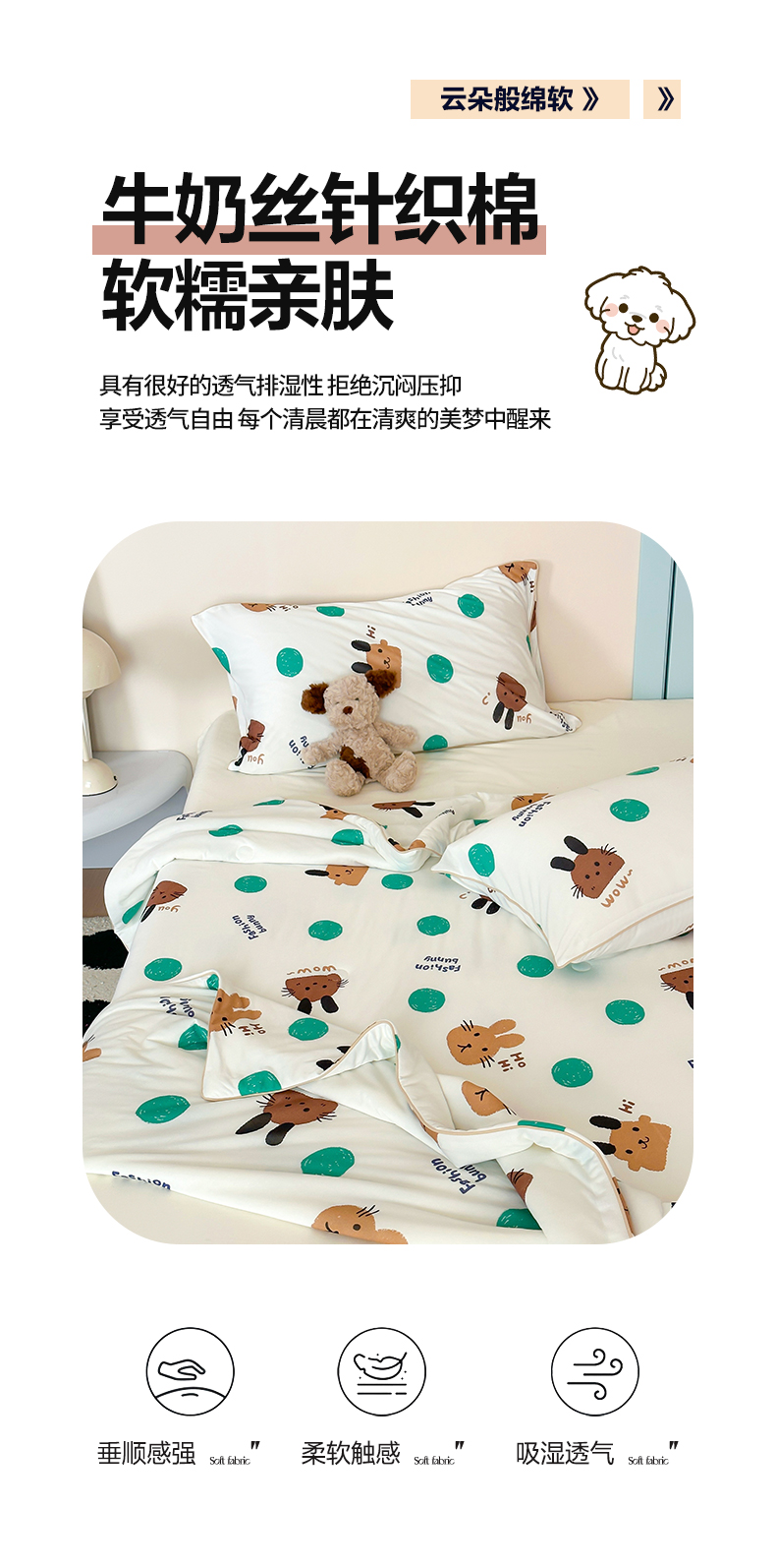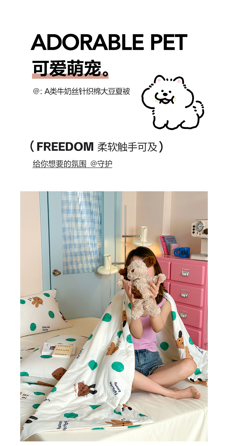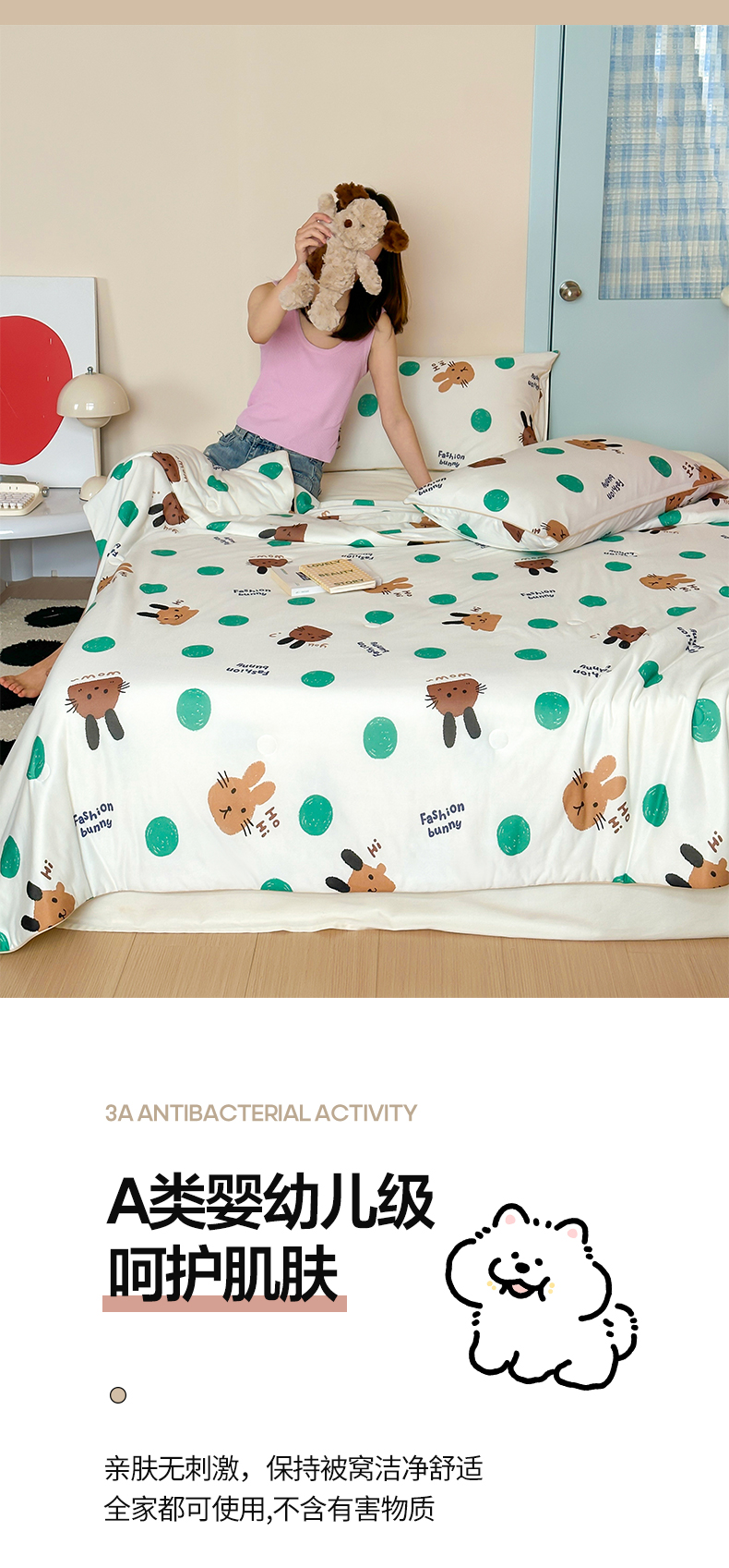 商品名称:一加一 2025A类牛奶丝针织棉印花大豆夏被 微醺兔兔