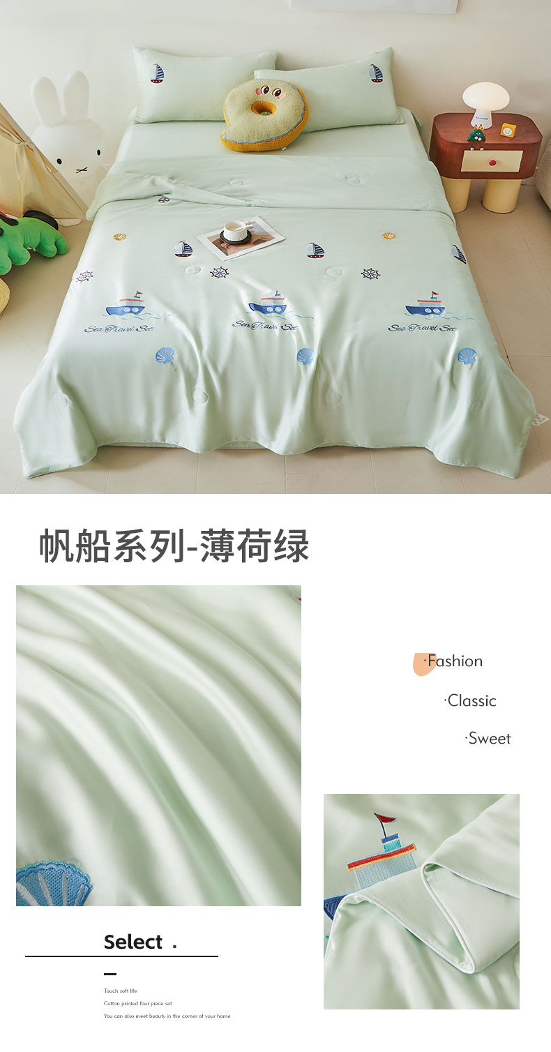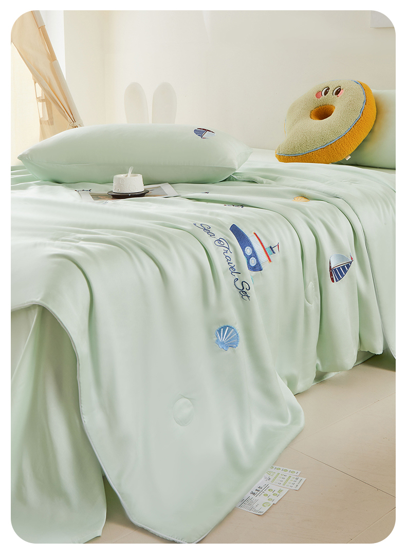 当前位置: 91家纺网 > 商品网购 > 床品套件 > 四件套 > 夏被四件套 > (总)雯豆家纺 2025夏季新品7A抗菌莱赛尔兰精天丝绣花刺绣夏被空调被四件套凉感被芯