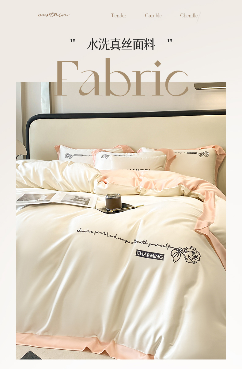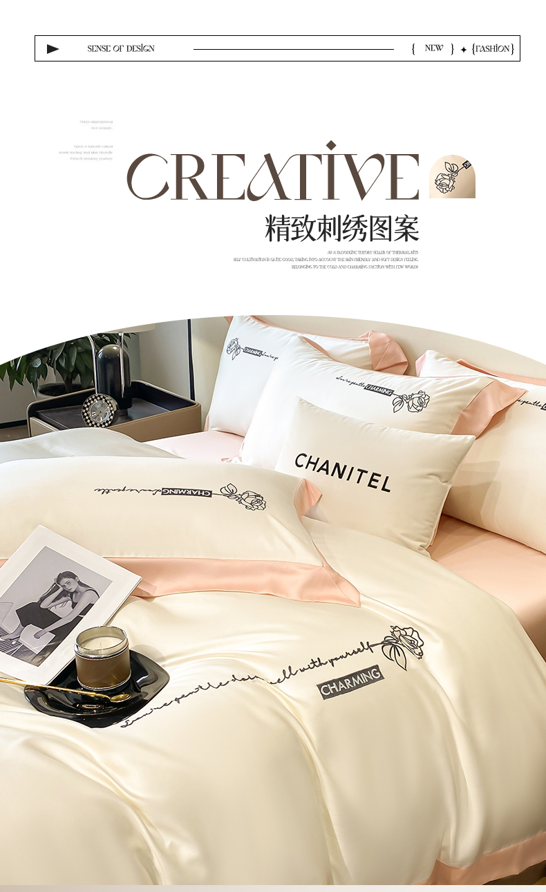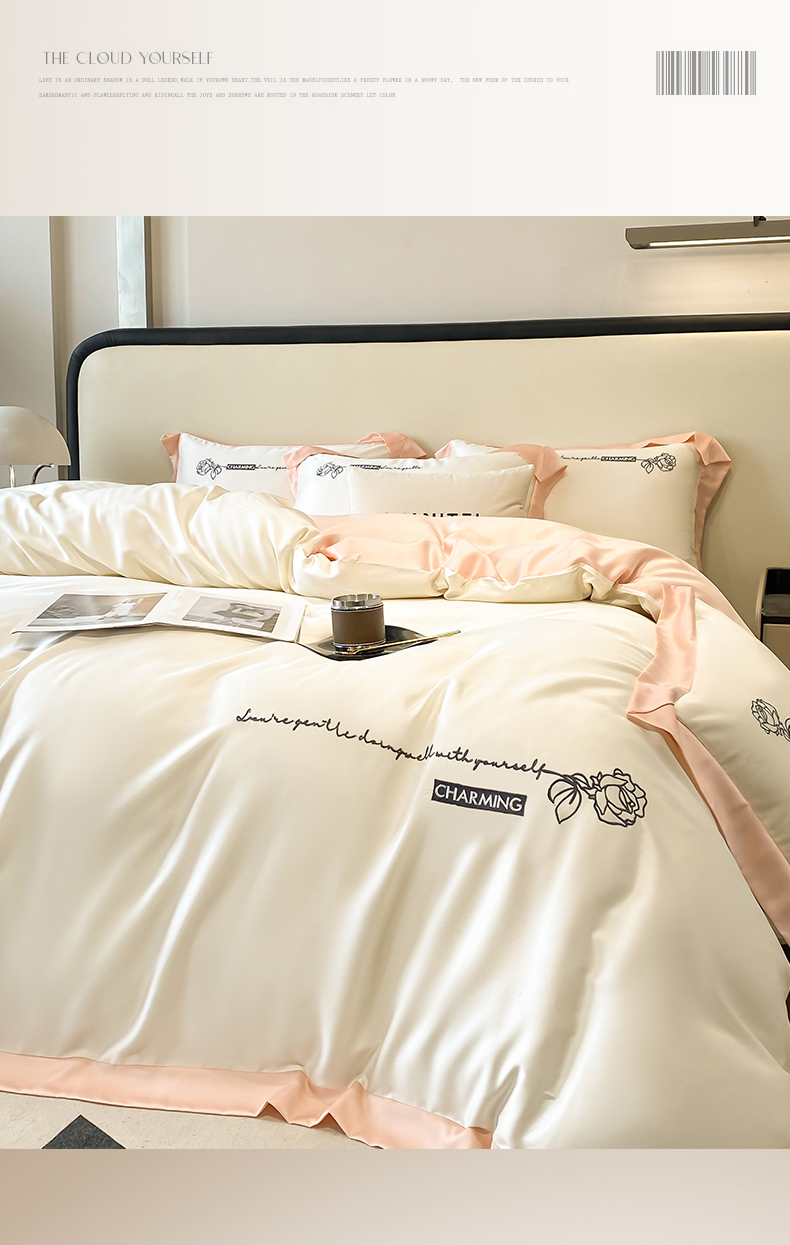 商品名称:2025春季新款亲肤水洗真丝刺绣四件套-罗伊莎 月牙白-浅肤