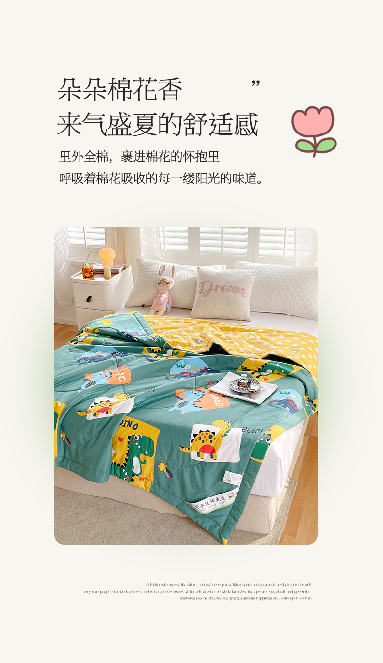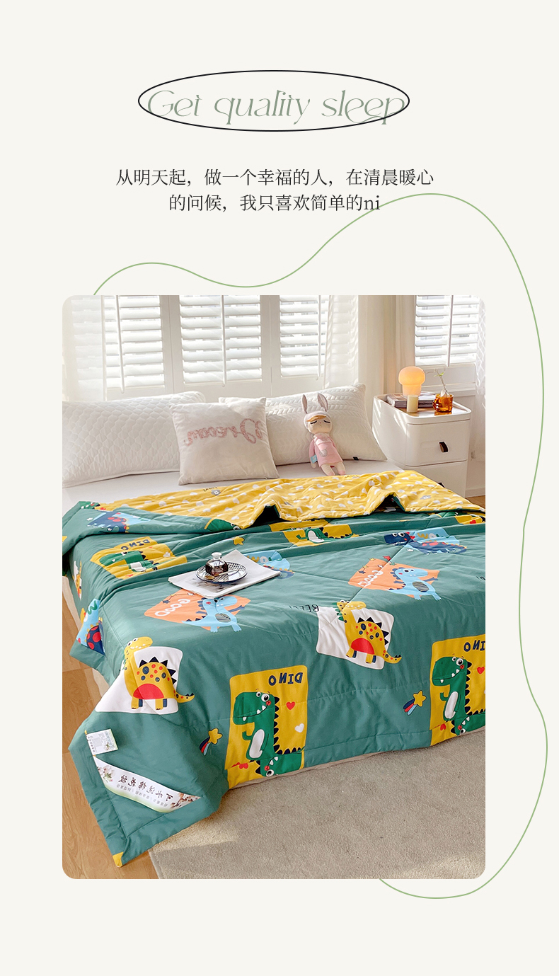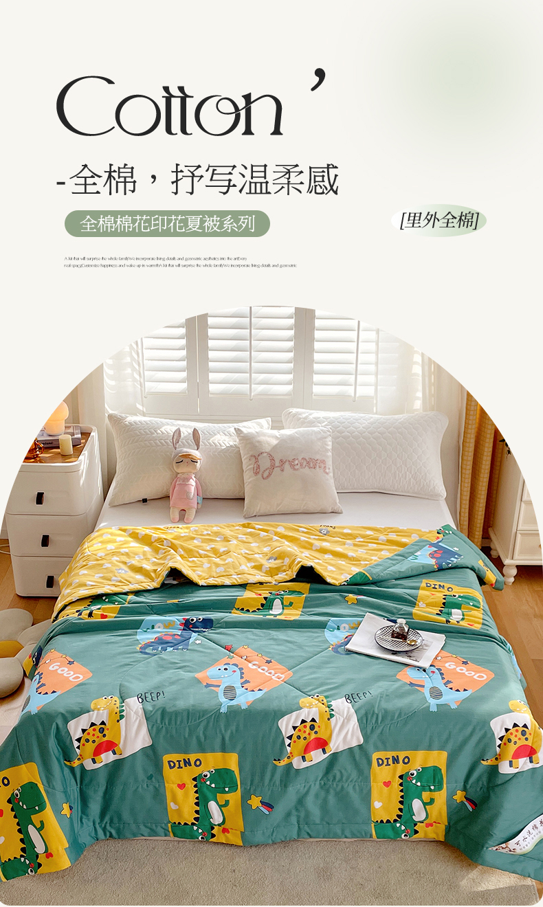 被子 > 夏被 > (自己工厂 有网销大热款 网销帮推可合作优惠)2025新款全棉夏被空调被夏凉被纯棉夏季儿童棉花薄被子 恐龙家族-绿