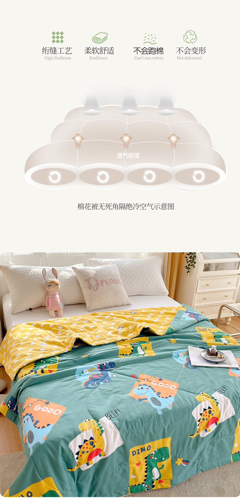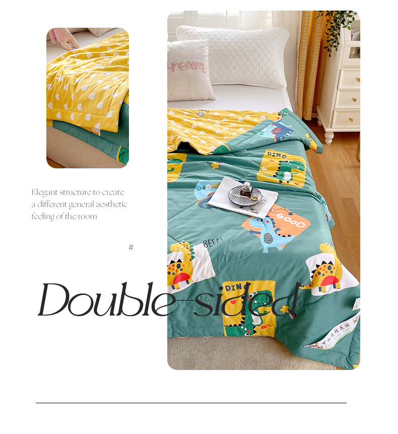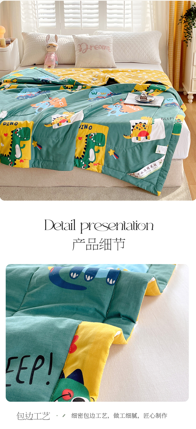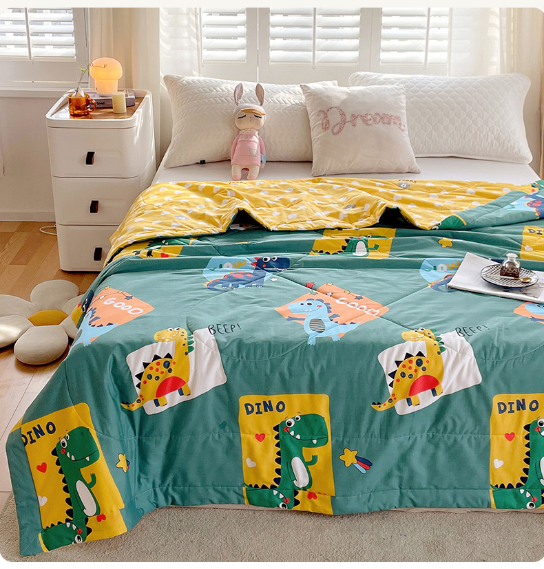 被子 > 夏被 > (自己工厂 有网销大热款 网销帮推可合作优惠)2025新款全棉夏被空调被夏凉被纯棉夏季儿童棉花薄被子 恐龙家族-绿