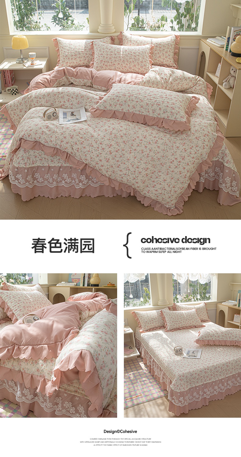 当前位置: 91家纺网 > 商品网购 > 床品套件 > 四件套 > 针织棉四件套 > 珍爱家纺 2025新款A类针织棉双层纱夹棉床盖床裙花边单件三件四件套 小心心咖