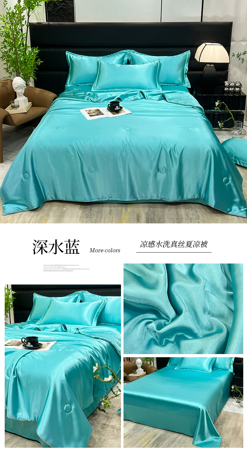 • 91家纺网 家纺一手货源 找家纺 经年 2025夏季新款丝绸真丝手感水洗真丝天丝夏被夏凉被空调被四件套 夏被-深水蓝