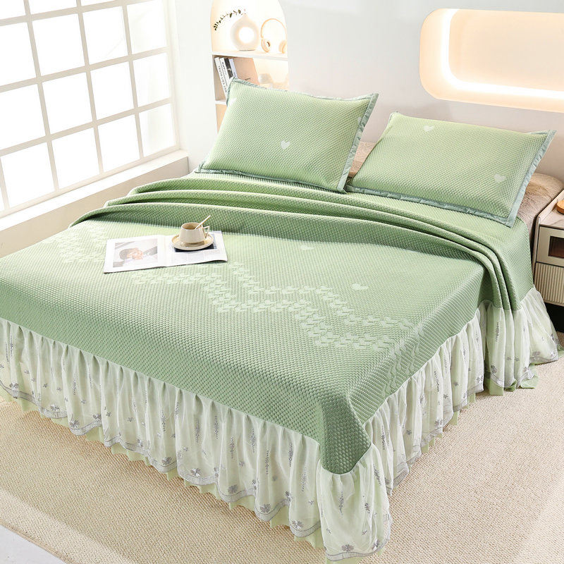 新月家纺(锦威郎)2025新款凉爽亲肤凉豆豆床裙 爱心床裙蓝