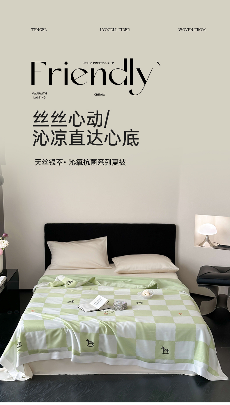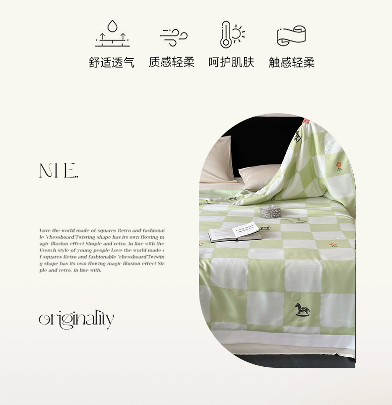 商品名称:茧羽世家 2025新款天丝银萃沁氧抗菌系列夏被子被芯 绿野棋语