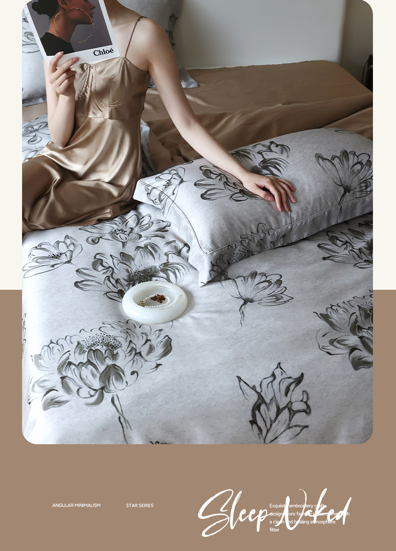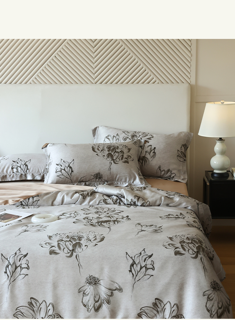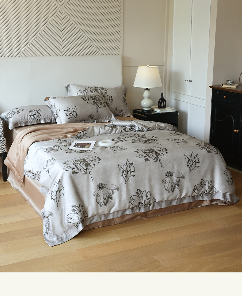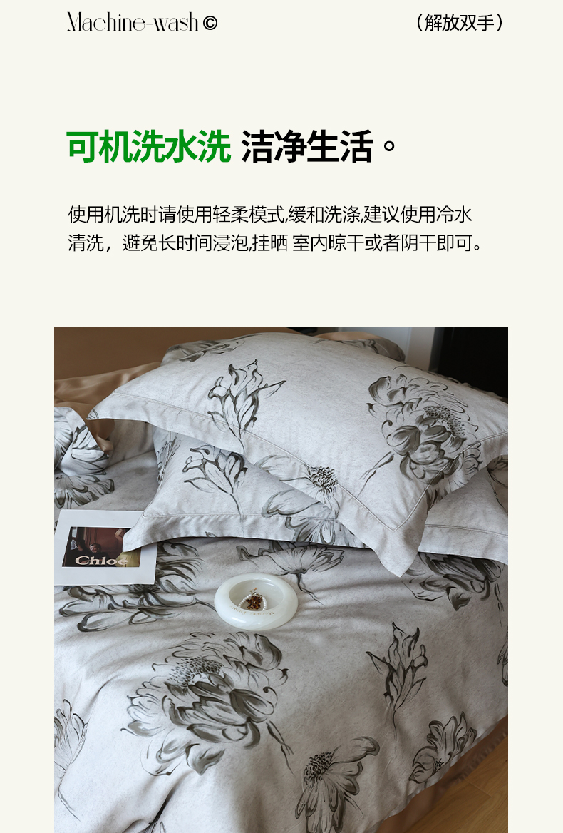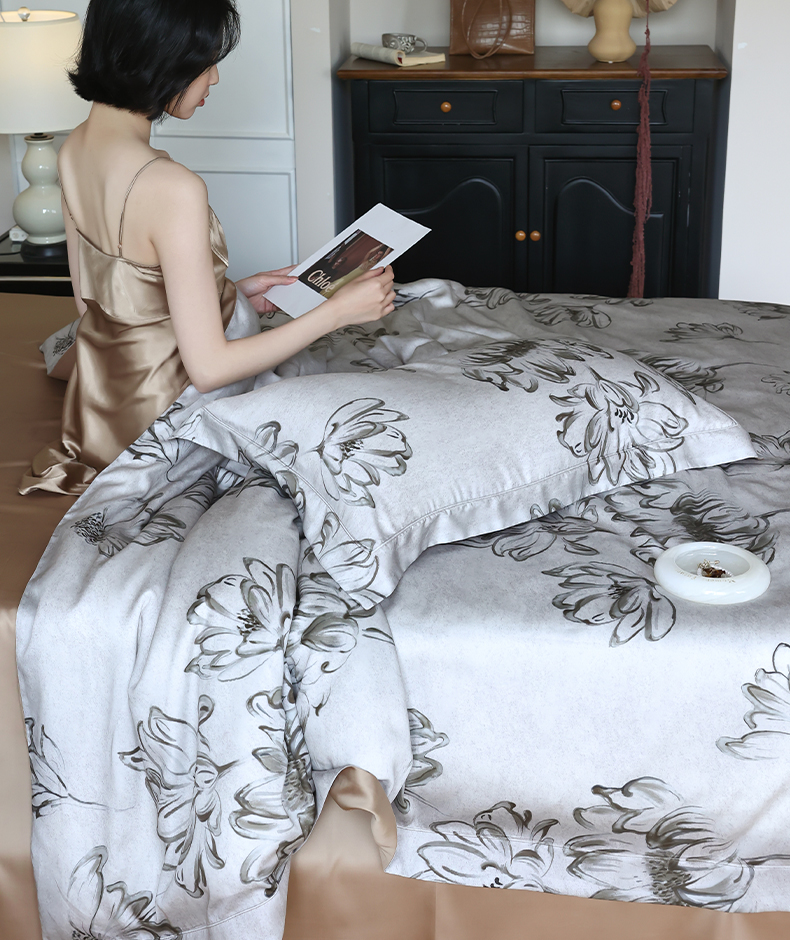 2025新款奥地利60s兰精天丝数码印花复古风四件套-绽放 绽放-雪意牡丹