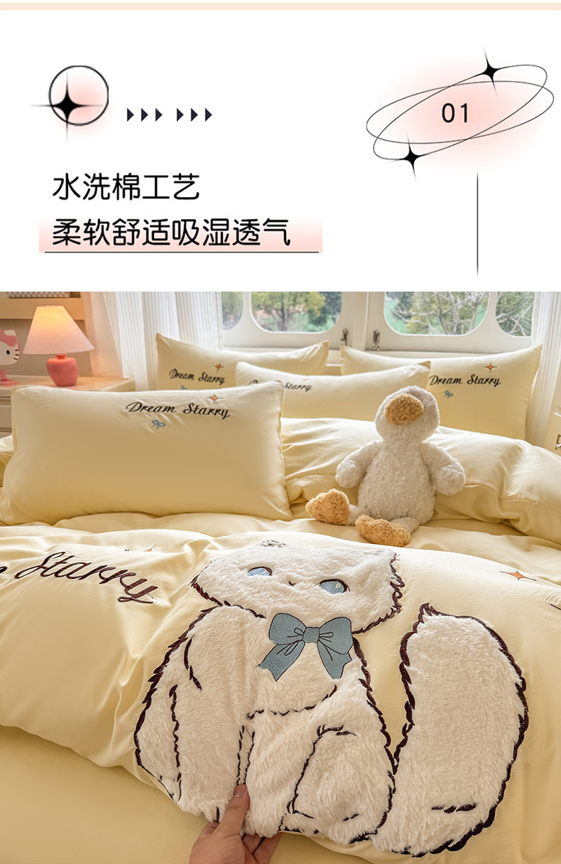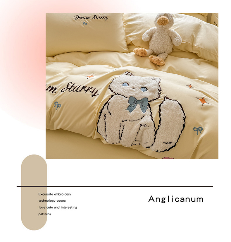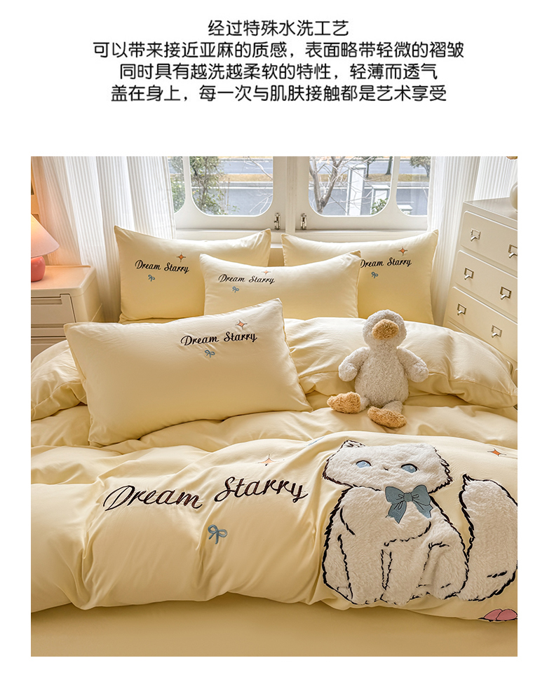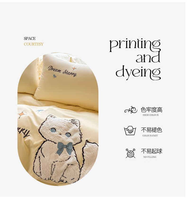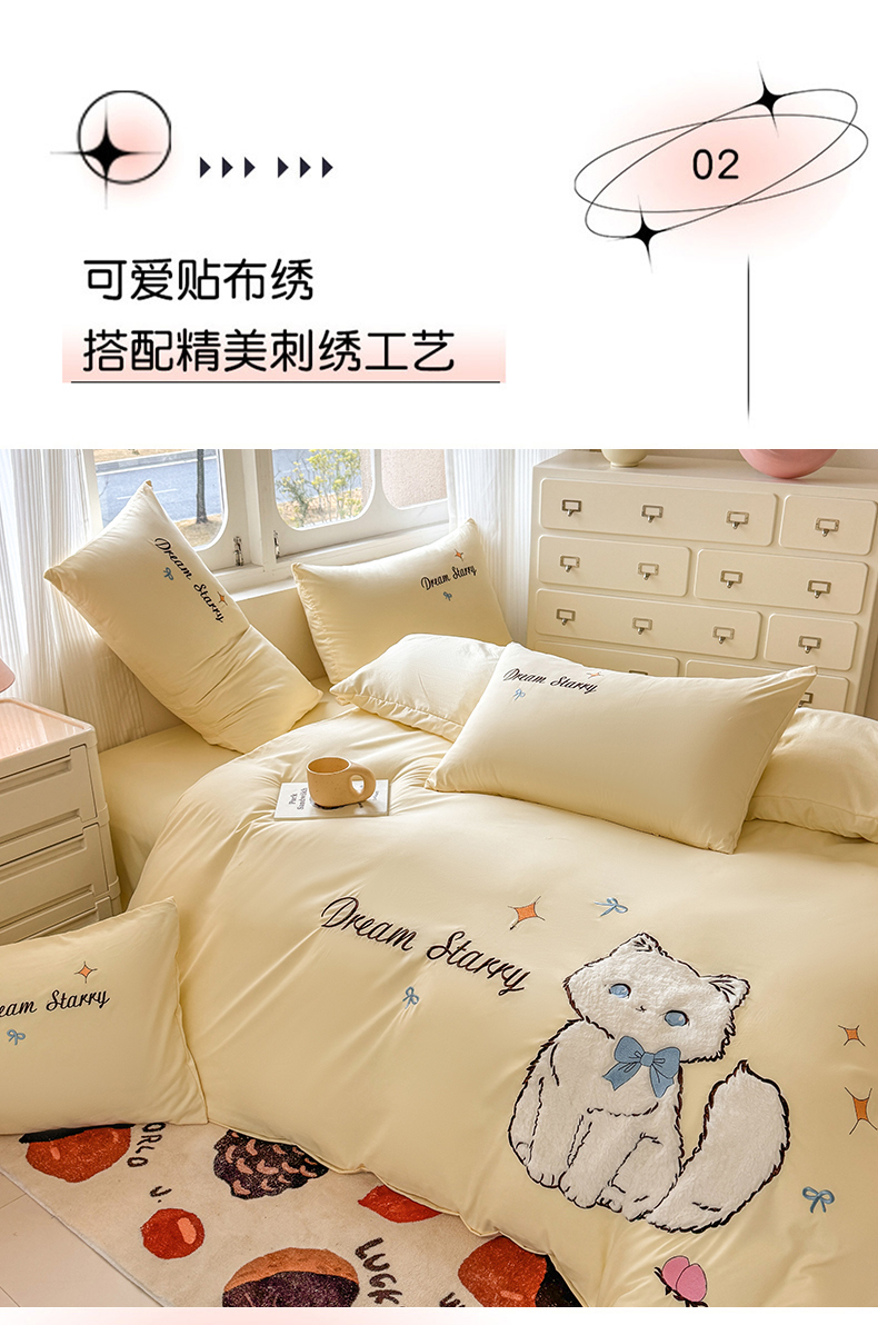 当前位置: 91家纺网 > 商品网购 > 床品套件 > 四件套 > 水洗棉四件套 > 凯美 2025新款超柔水洗棉卡通贴布绣四件套 幸运小猫-浅黄