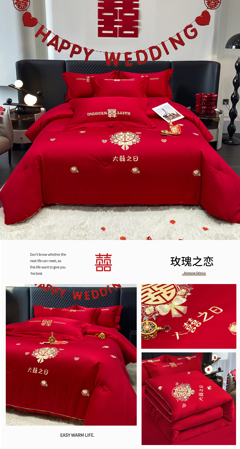 (总)2025新款婚庆刺绣整张大豆棉喜被被子被芯,玫瑰之恋,福喜盈门,家有喜事