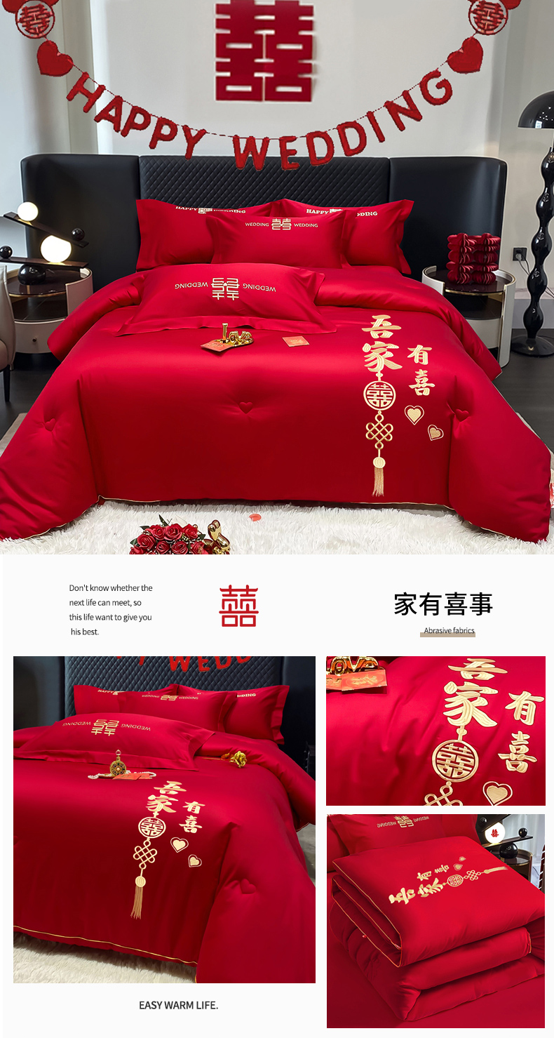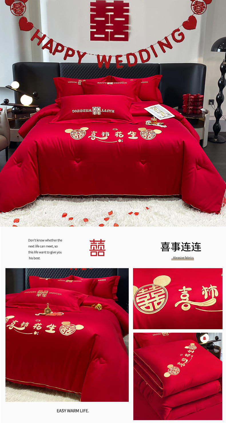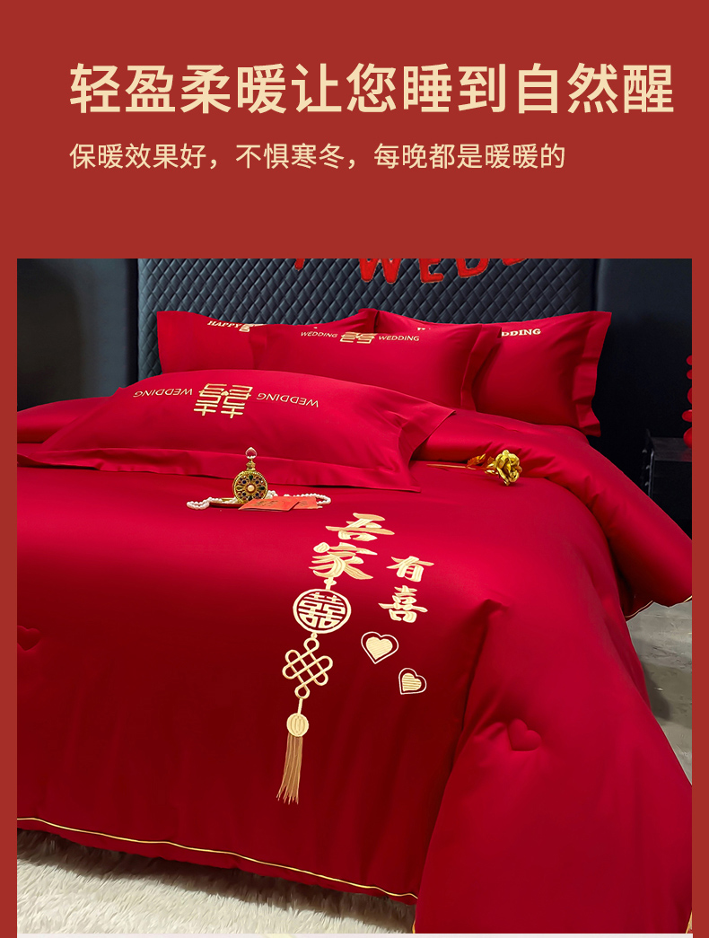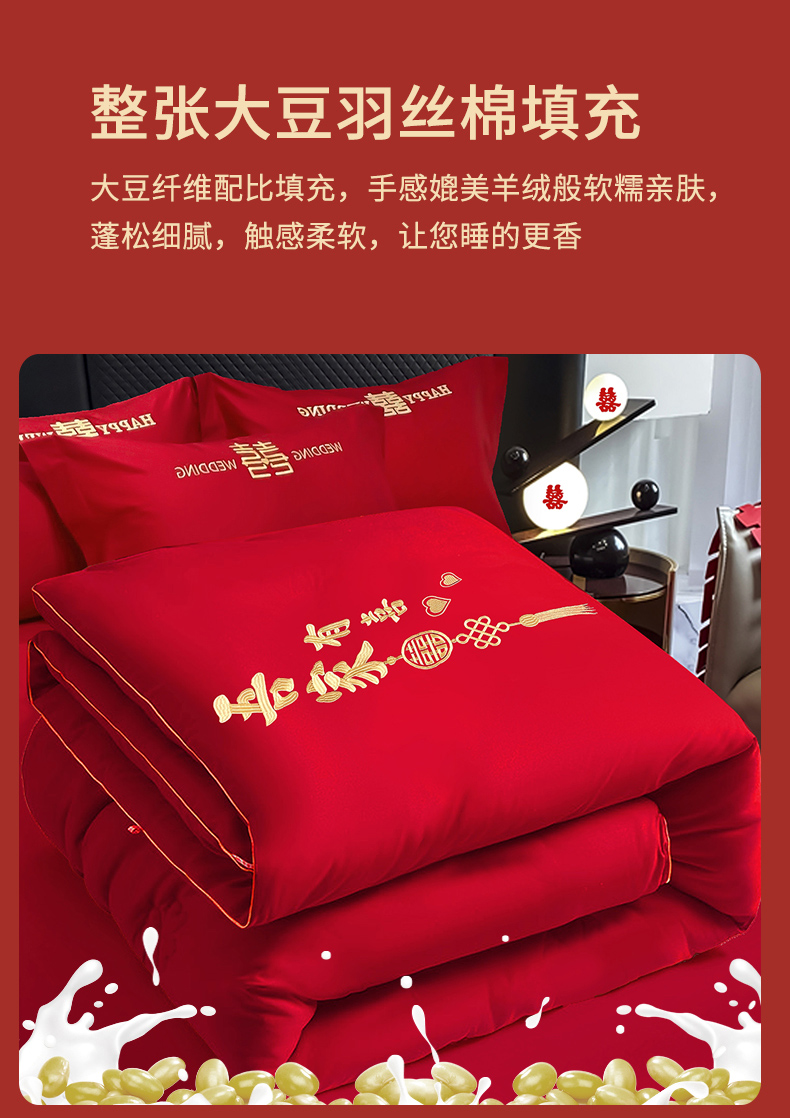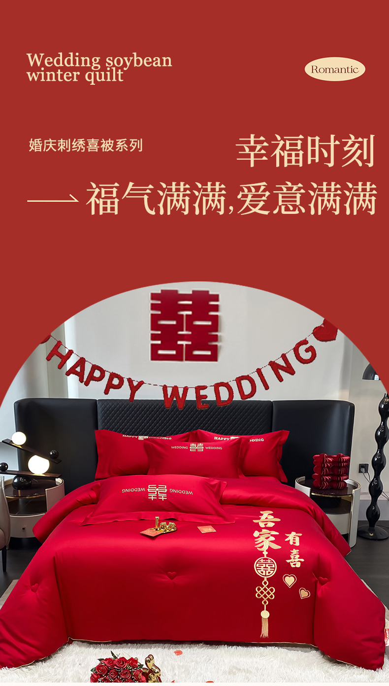 商品名称:2025新款婚庆刺绣整张大豆棉喜被被子被芯 家有喜事