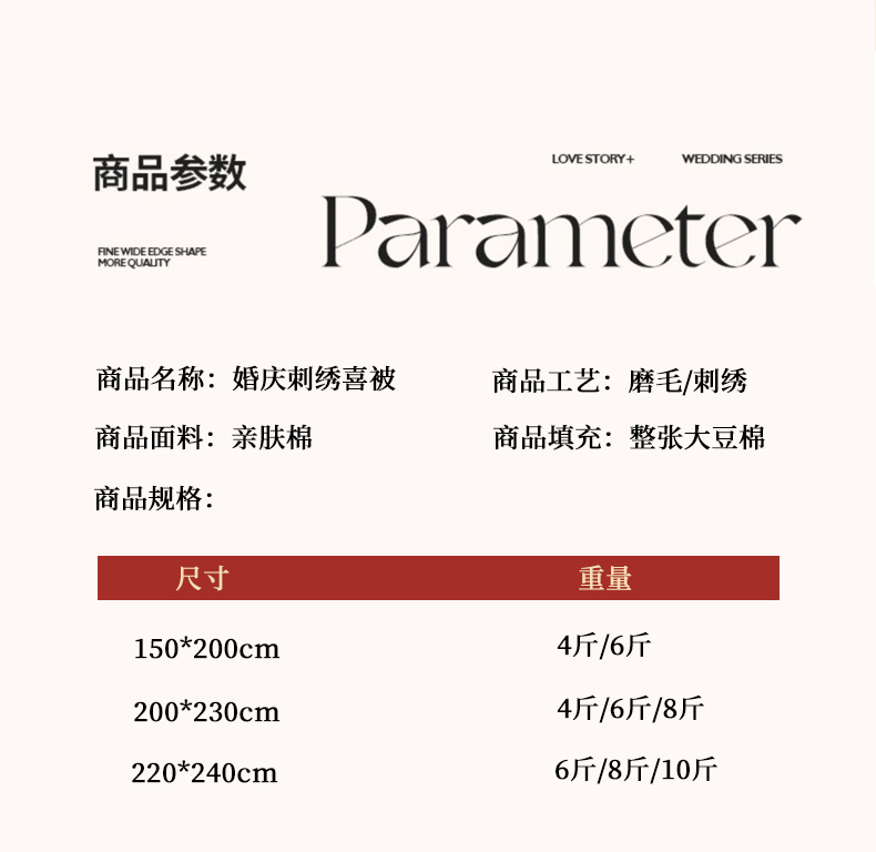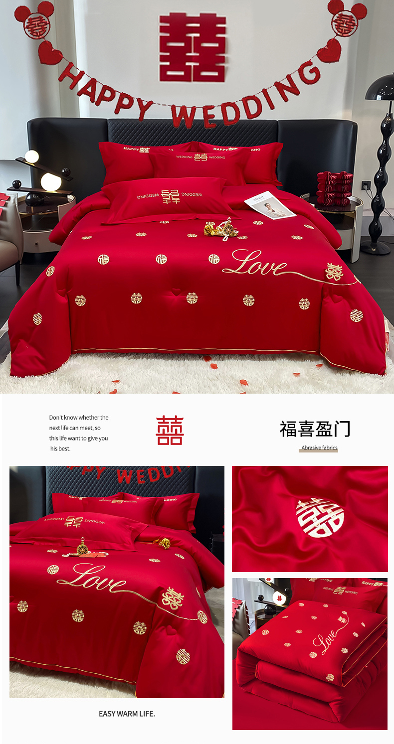 (总)卓缦家纺 2024新款亲肤棉磨毛婚庆刺绣喜被大豆被冬被 控价+45元,福喜盈门,家有喜事,喜事连连,时尚款包装