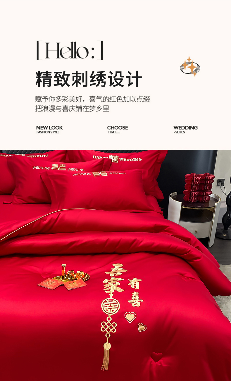 (总)卓缦家纺 2025新款提花刺绣婚庆四件套(控价50+),热情玫瑰,喜悦,永恒