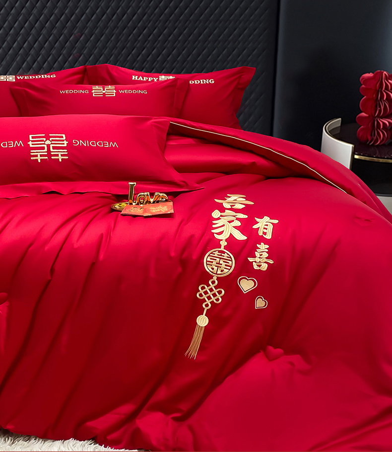(总)卓缦家纺 2025新款水洗磨毛婚庆床单/床笠,福喜双全,和和美美,龙凤和鸣,千喜图