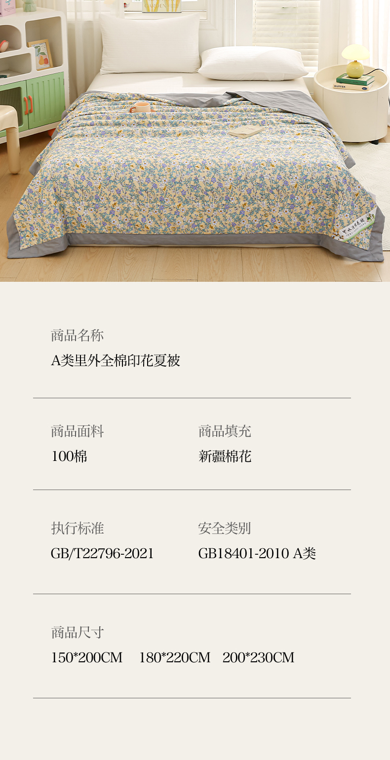 商品名称:锦鹭被业 2025新款A类里外全棉印花夏被 清香