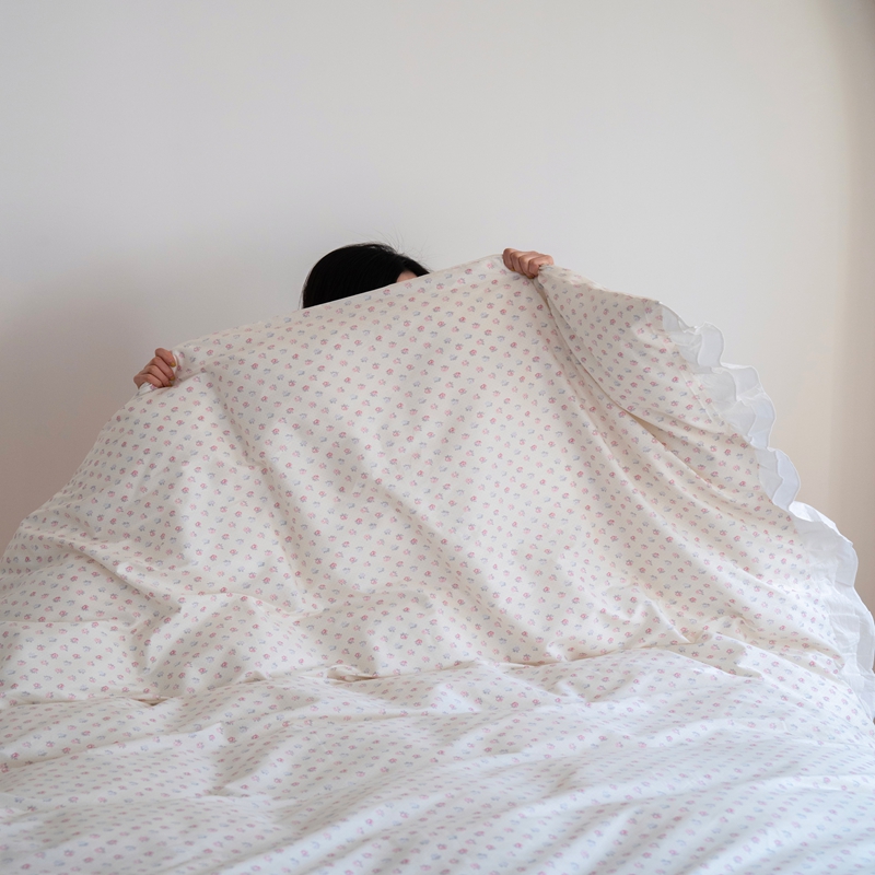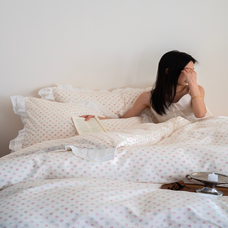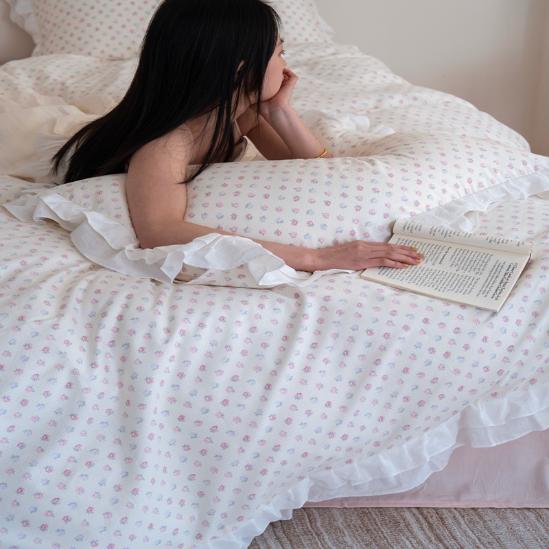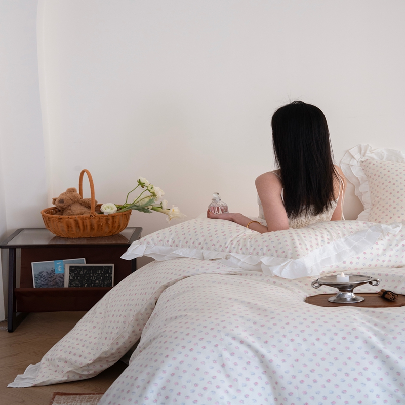 (总)尺素 2025新款田园小清新纯棉四件套出口韩国ins博主风全棉被套纯色加大床单1.8床笠印花枕套学生宿舍三件套,春不晚 桃粉,花似锦 奶白,紫鸢千夏紫