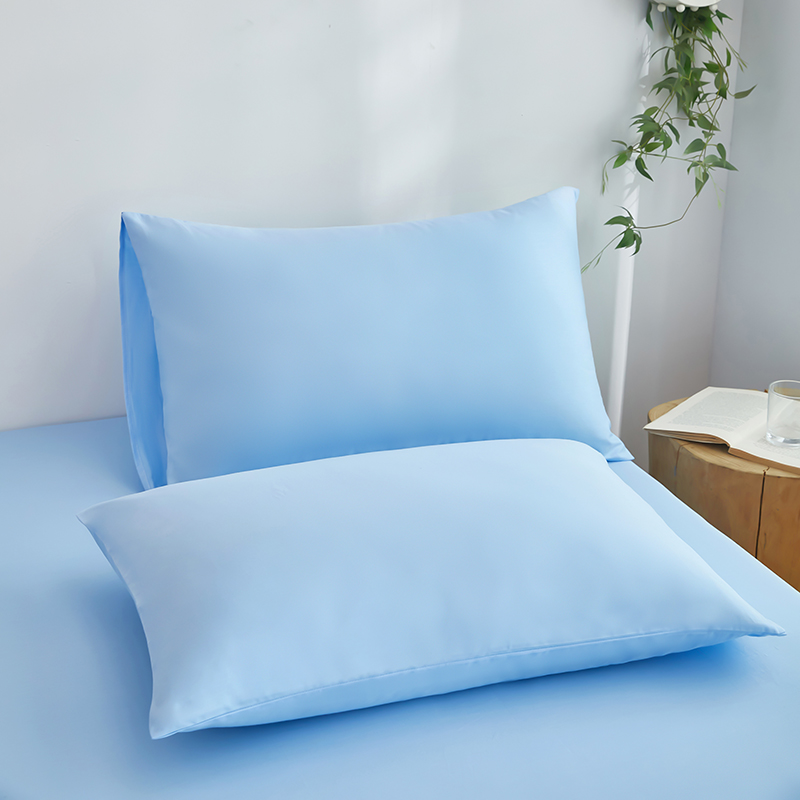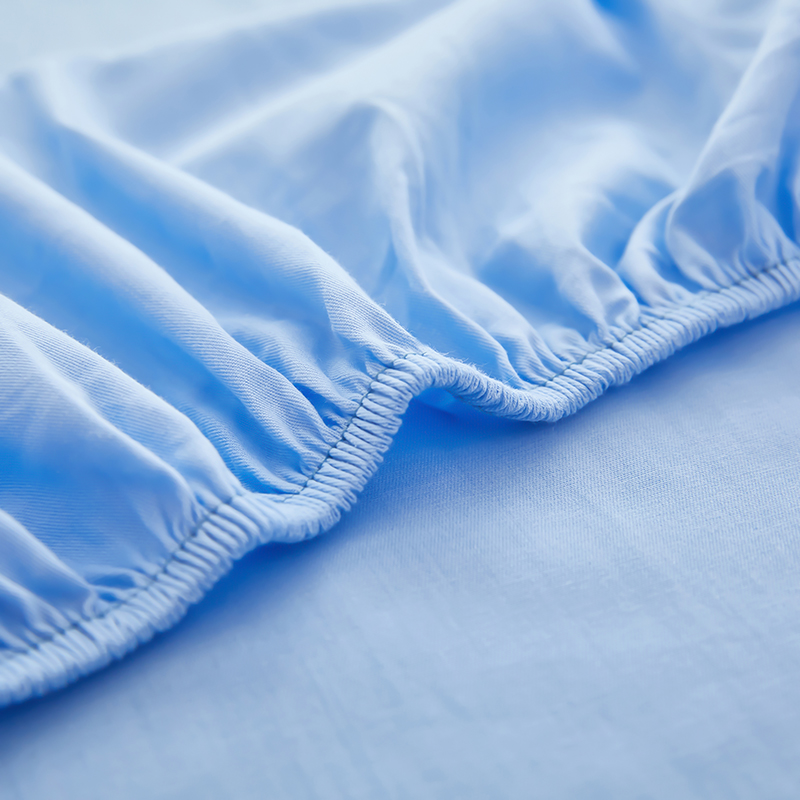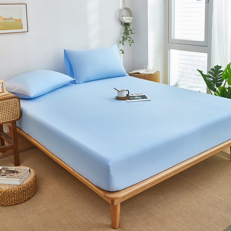 艾橙家纺 2025新款正宗133x72喷气织造全棉纯棉纯色床笠三件套 天真蓝