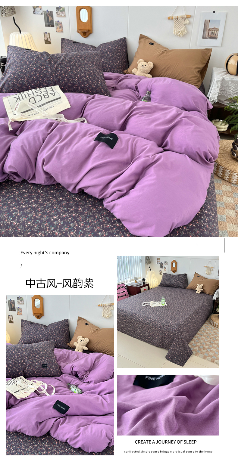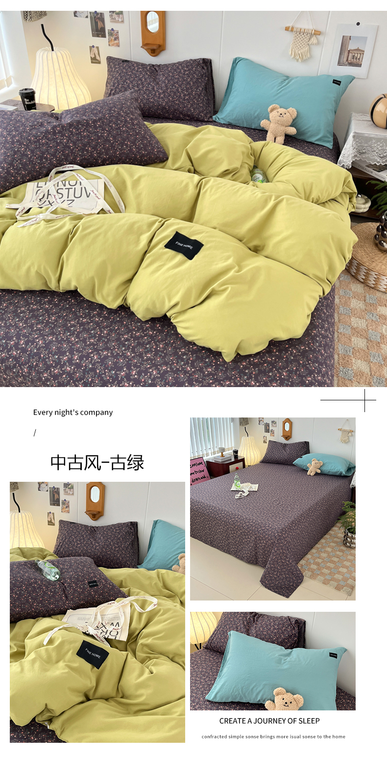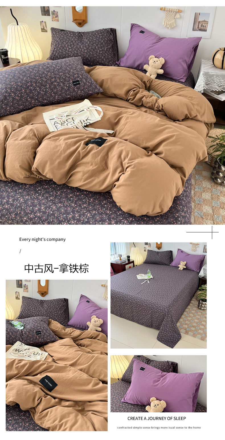 (总)亿品家纺 2025新款水洗棉复古风格四件套,中古风-蒂芙尼蓝,中古风-豆沙粉,中古风-风韵紫,中古风-古绿,中古风-拿铁棕,中古风-胭脂粉