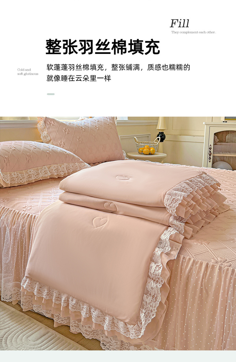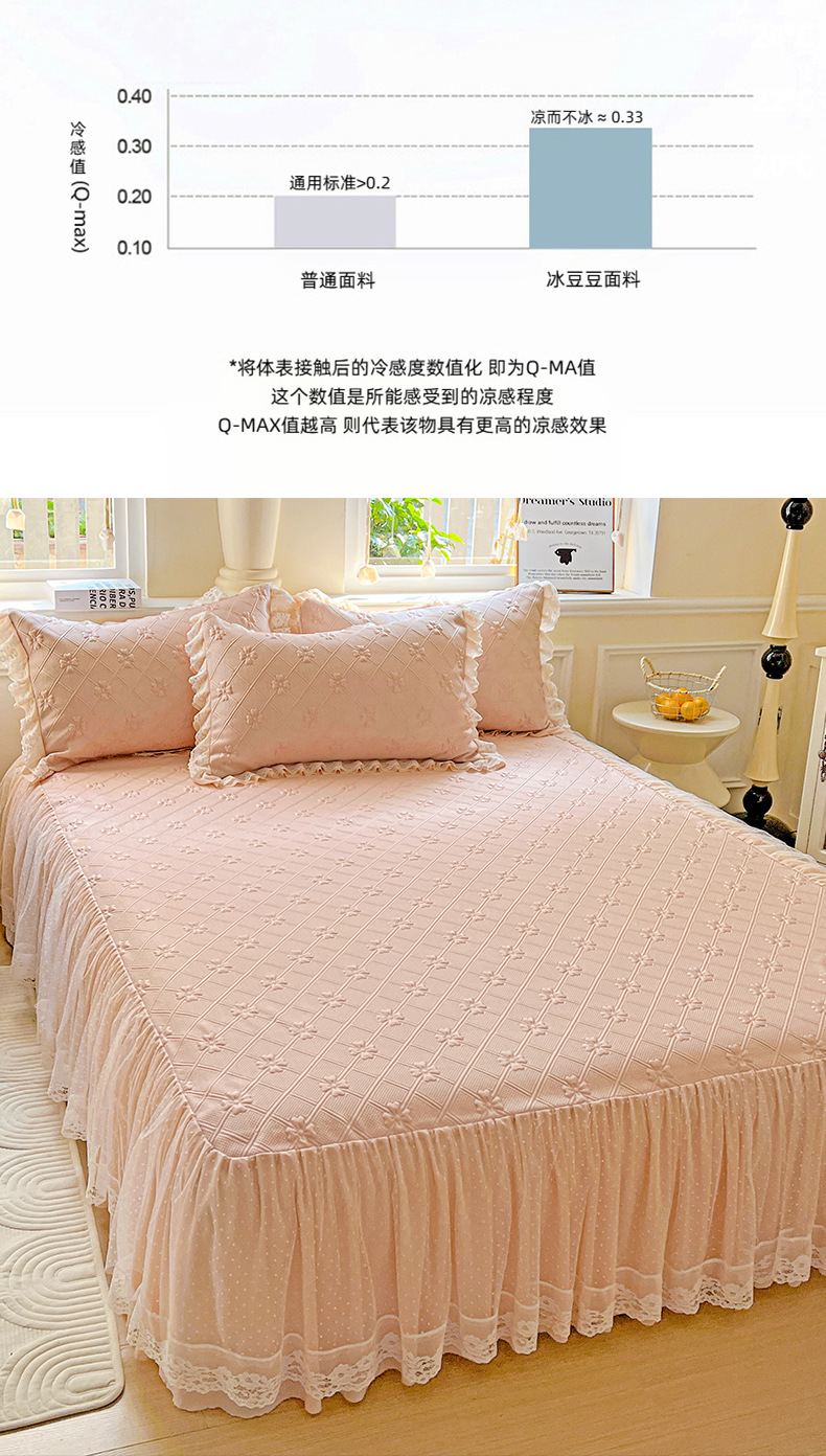 创爱家纺 2025新款3D提花冰豆豆床裙款凉席夏被四件套 冰豆豆-粉