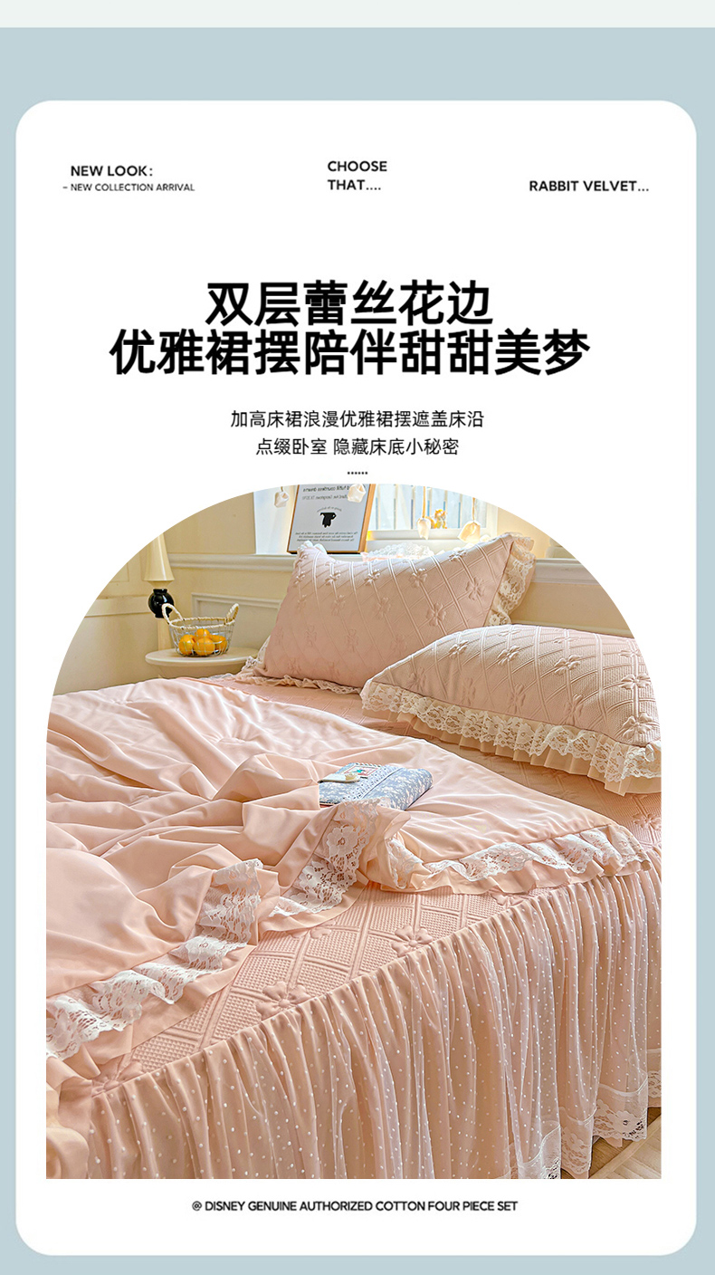 2025兔兔绒四件套床裙款兔毛绒剪花保暖绒泡泡牛奶绒四件套,兔毛七彩粉,兔毛七彩紫,兔毛七彩灰,兔毛七彩绿,兔毛七彩驼,兔毛纯色奶白,兔毛纯色浅灰,兔毛纯色绿,兔毛纯色粉,兔毛纯色紫,兔毛纯色深灰,兔毛纯色奶白粉,兔毛纯色卡其,兔毛白加咖