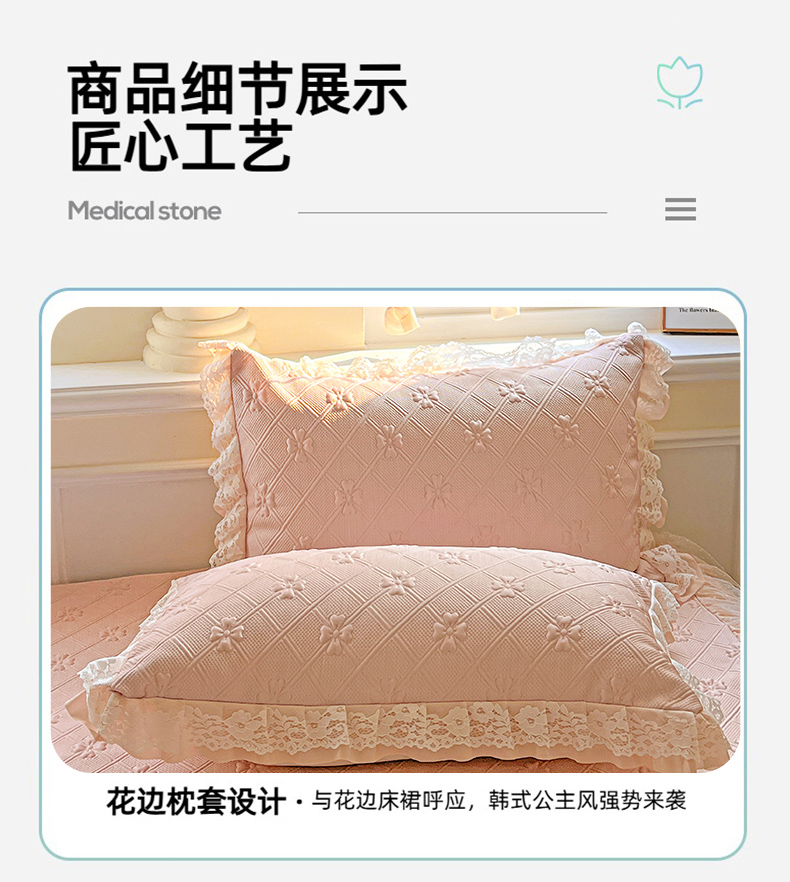 商品名称:创爱家纺 2025新款3D提花冰豆豆床裙款凉席夏被四件套 冰豆豆-粉