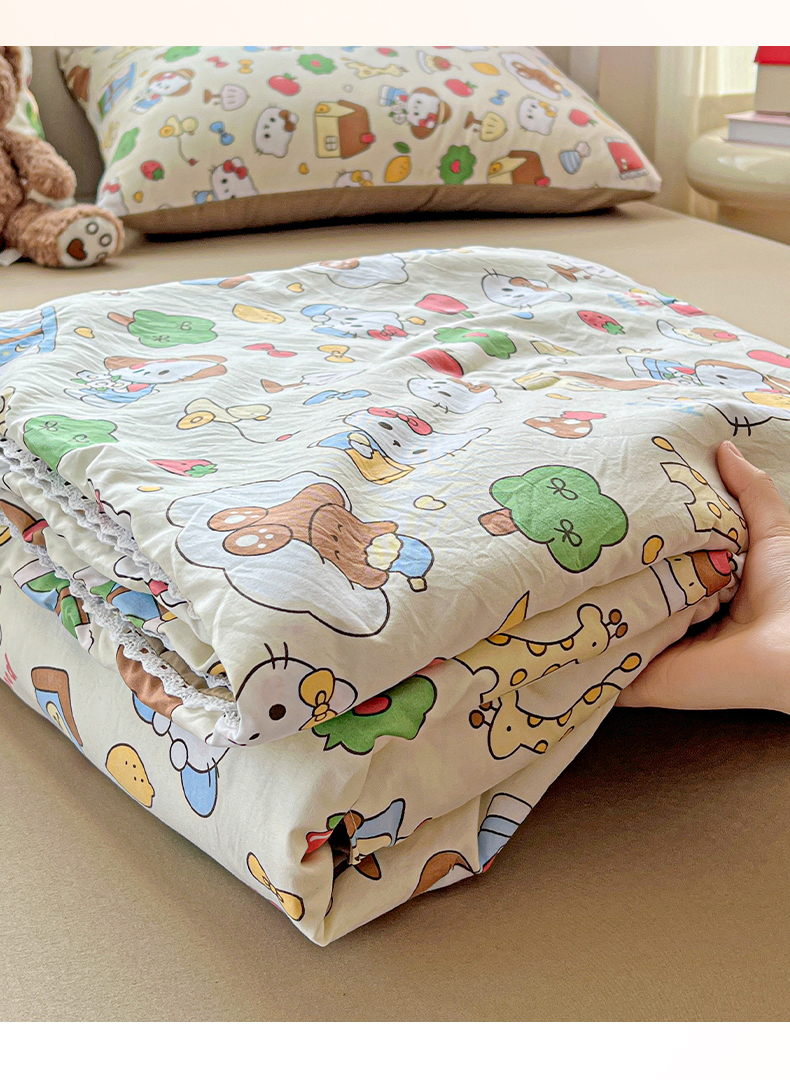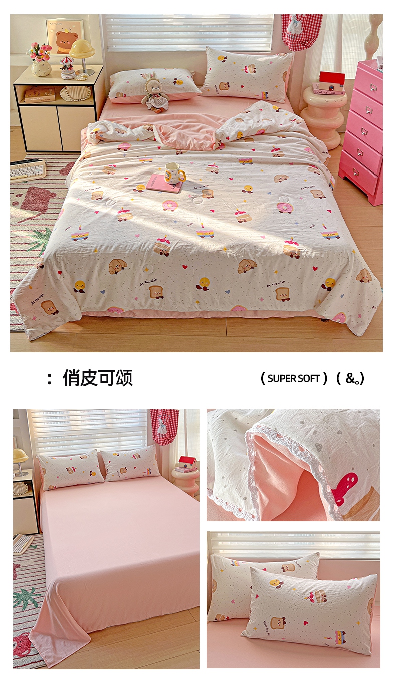商品名称:妖妖家纺 2025新款超柔双层纱糯糯针织棉夏凉被四件套 猫咪春游迹