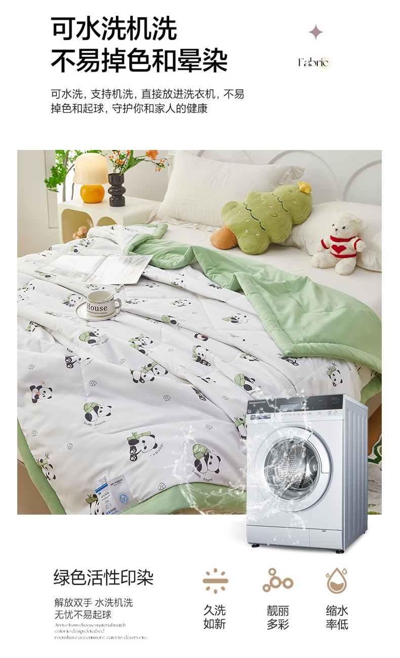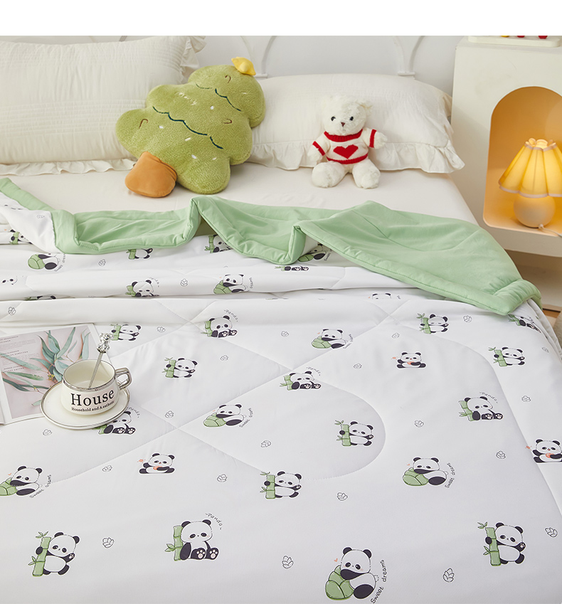 (总)中国龙家纺 2025新款双面可用兔毛绒豆豆被被子被芯,熊猫点点-绿,熊猫点点-咖