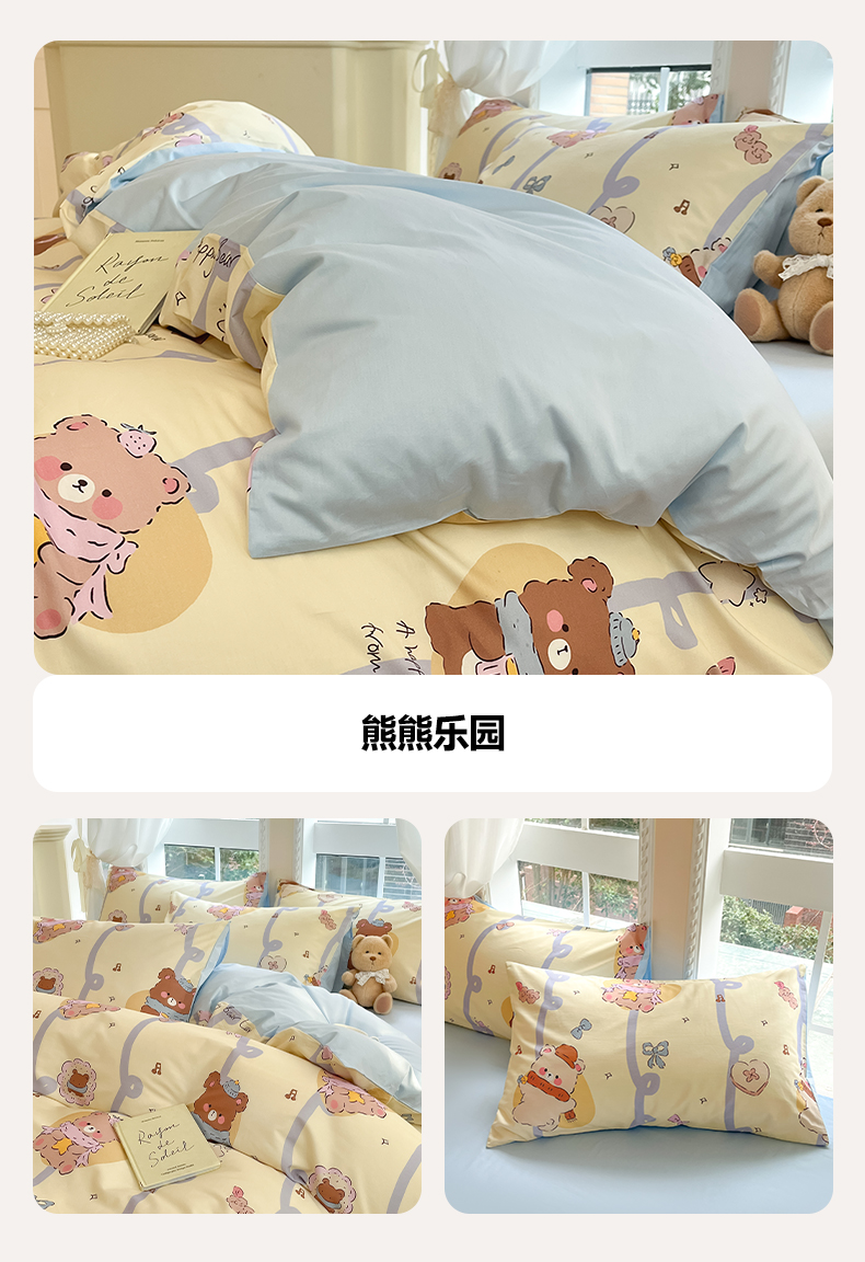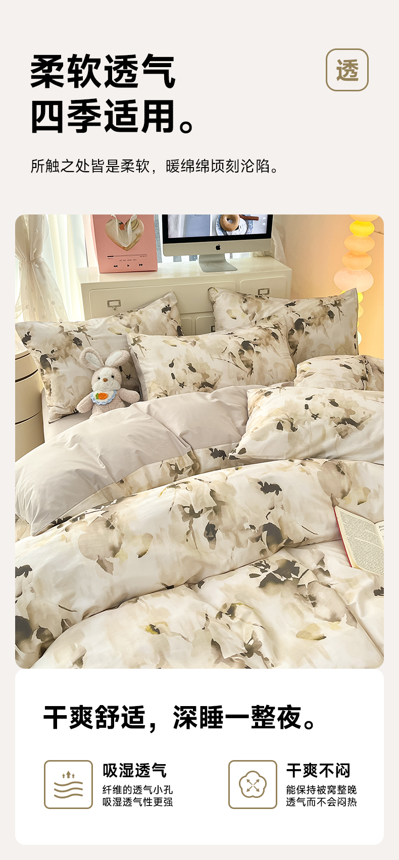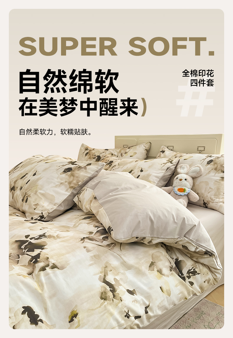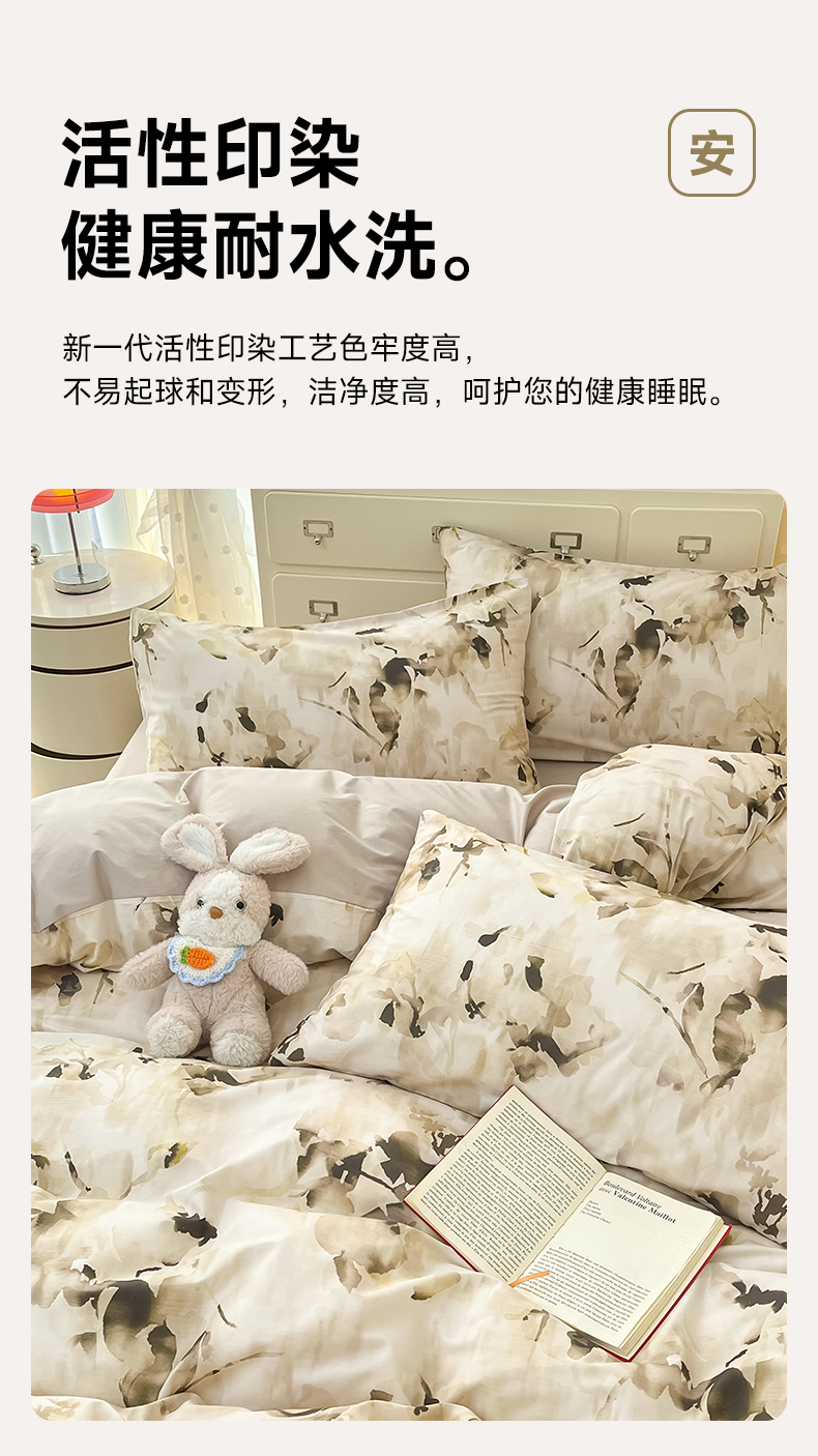 仔仔熊 2025新款全棉印花四件套 水墨画