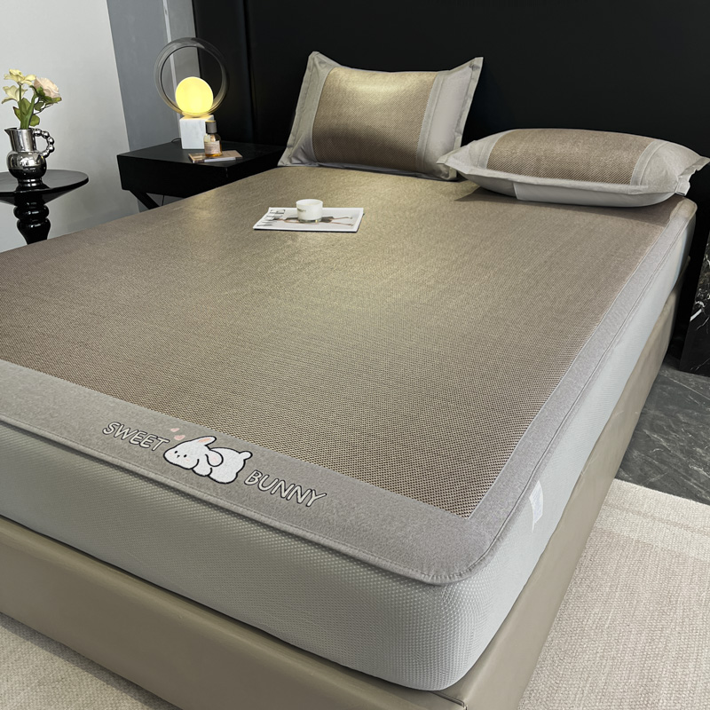 莱米家纺 2025新款加厚凉感绣花冰藤席 可爱兔—香槟-床笠